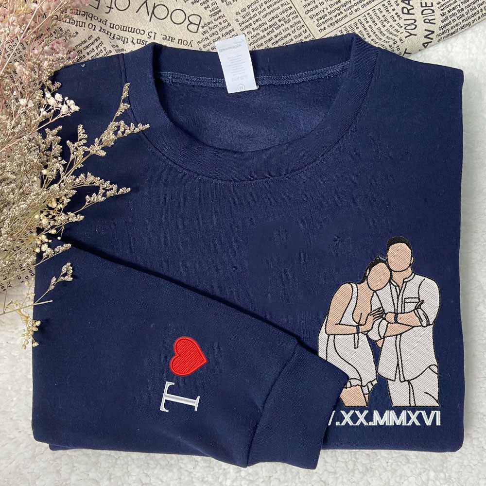 Personalisiertes Paar-Foto-gesticktes Sweatshirt-Hoodie mit römischen Ziffern und Datumsangaben. Perfekte Geschenkideen zum Jahrestag