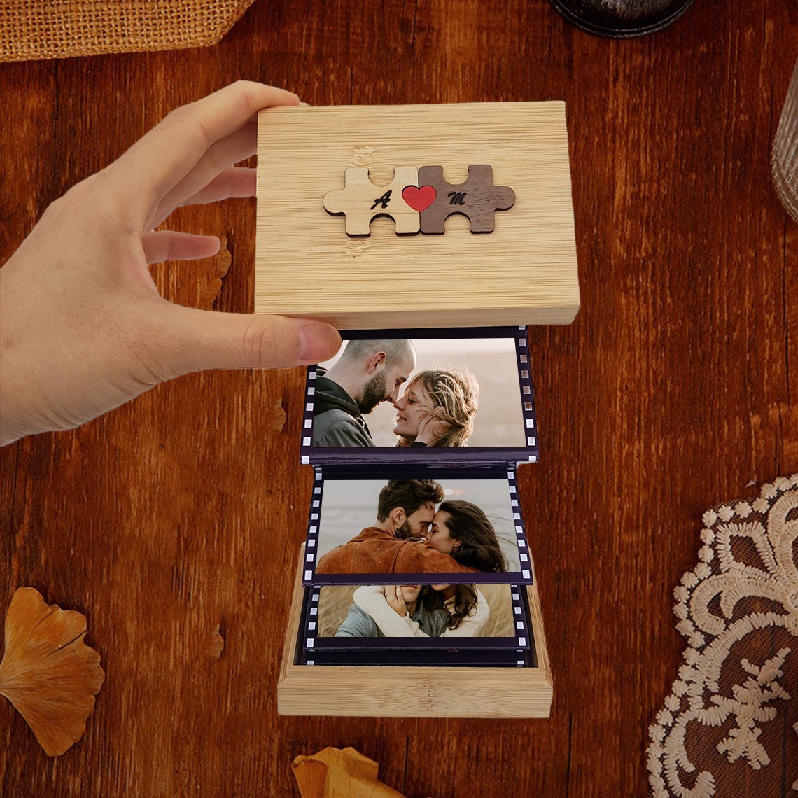 Personalisiertes Paar-Holzpuzzle zum Herausziehen, Fotoalbum-Box, einzigartige Geschenke für Paare, Jahrestagsgeschenkideen, Valentinstagsgeschenke
