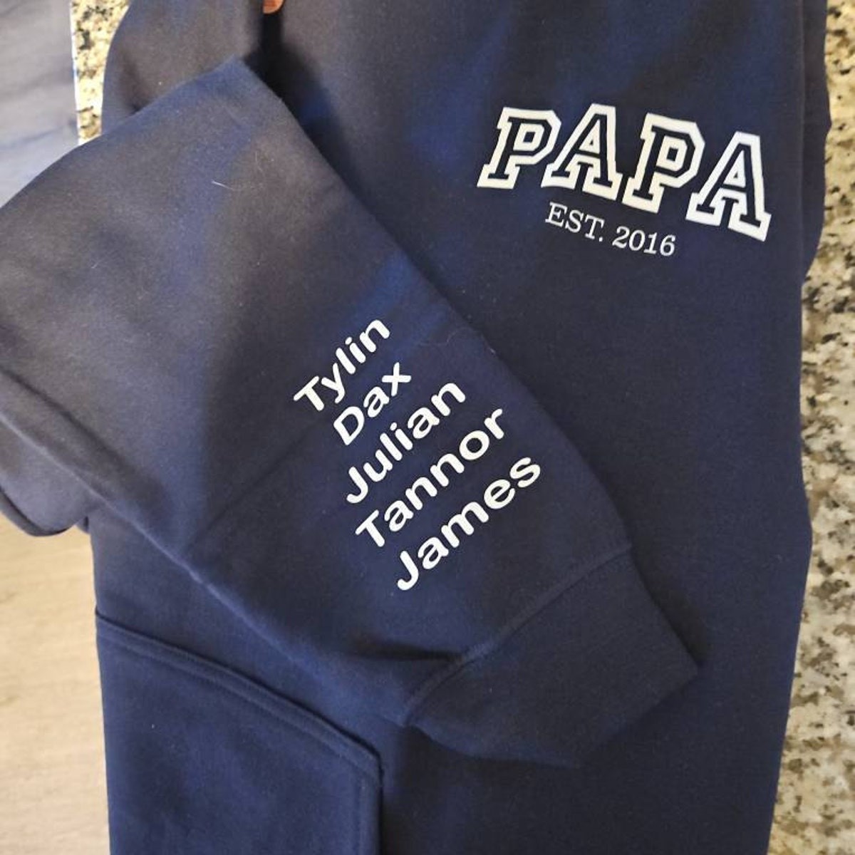 Personalisiertes Papa Sweatshirt mit Kindernamen am Ärmel, Daddy Est Year Hoodie, Geschenk für neuen Papa, Vatertagsgeschenk, Papa Opa Sweatshirt