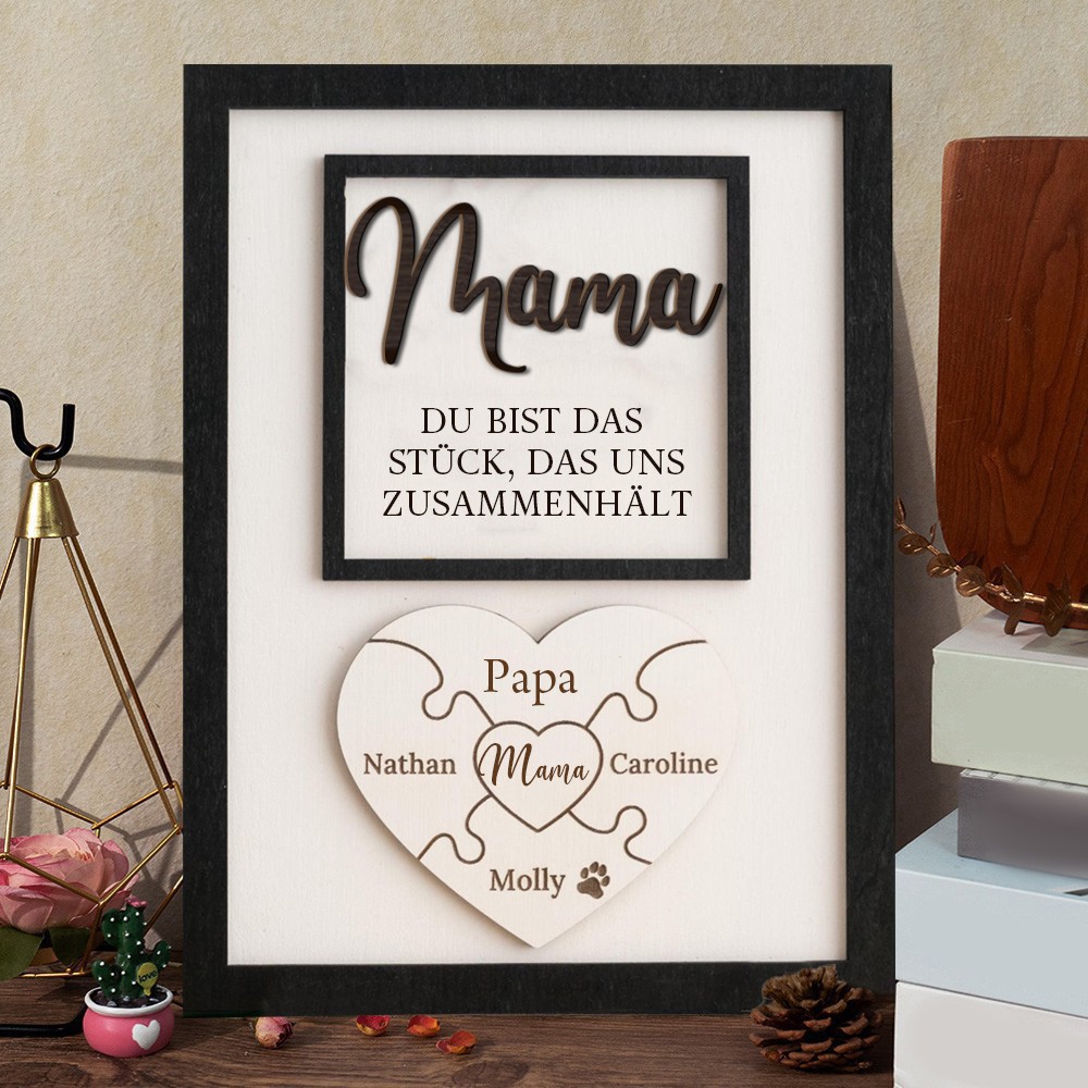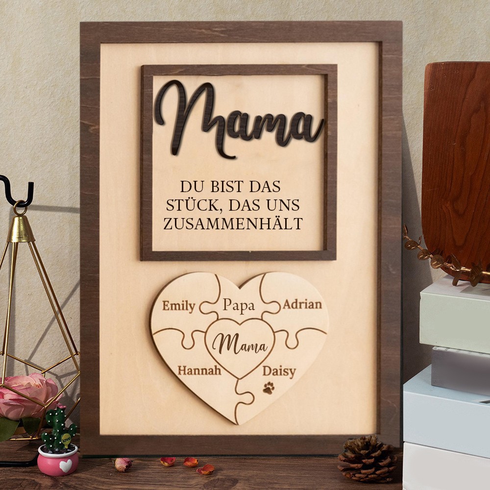 Personalisiertes Puzzleschild zum Muttertag | Mama, du bist das Stück, das uns zusammenhält | Muttertagsgeschenk | Personalisiert für Mama