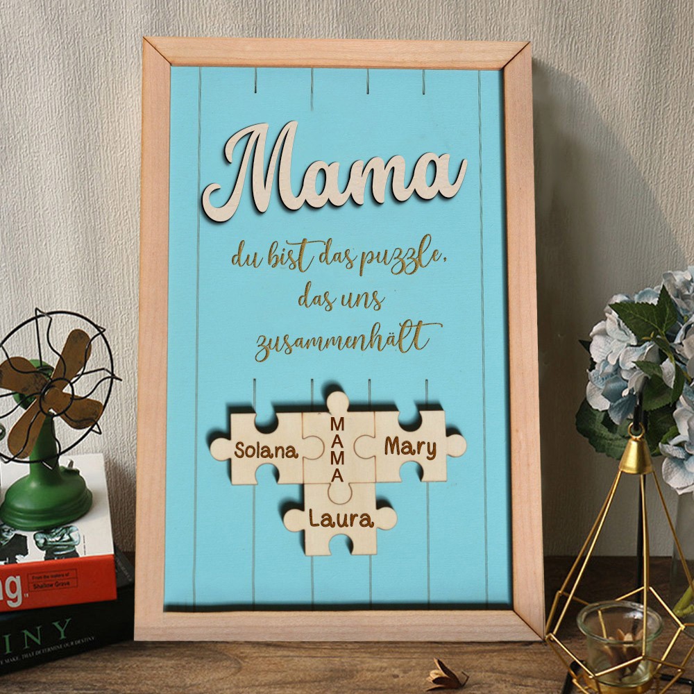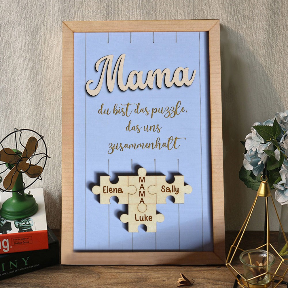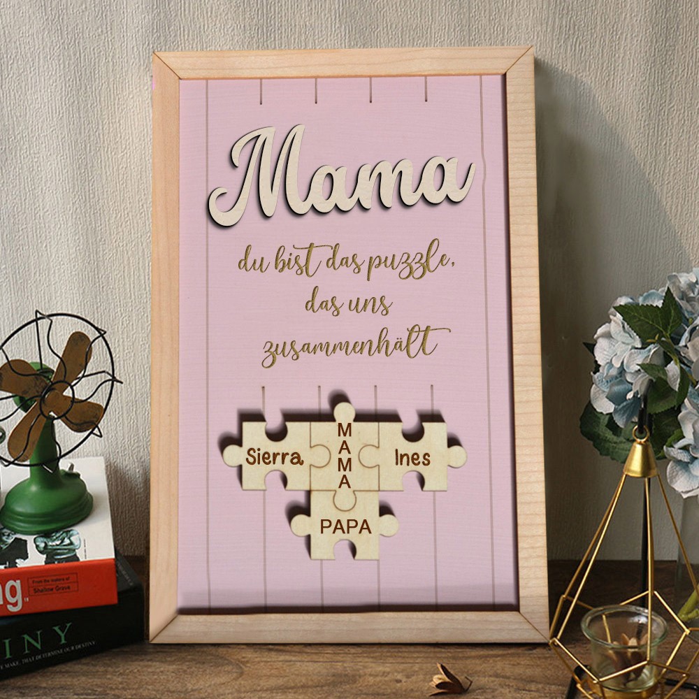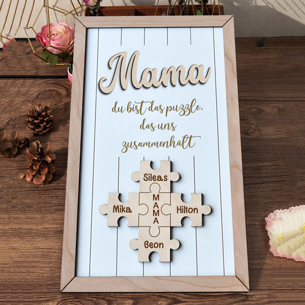 Personalisiertes Puzzleteil „Mama, du bist die Teile, die uns zusammenhalten“, Namensschild, Erinnerungsgeschenke für Mama, Oma, einzigartige Geschenkideen zum Muttertag