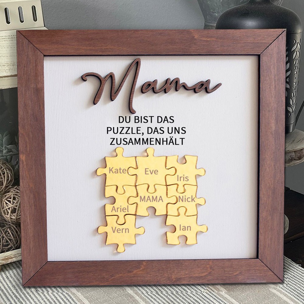 Personalisiertes Puzzleteil-Schild aus Holz „Mama, du bist das Teil, das uns zusammenhält“ mit dem Namen des Kindes, einzigartige Erinnerungsgeschenke für die Familie für Mama, Oma, Geschenkideen zum Muttertag