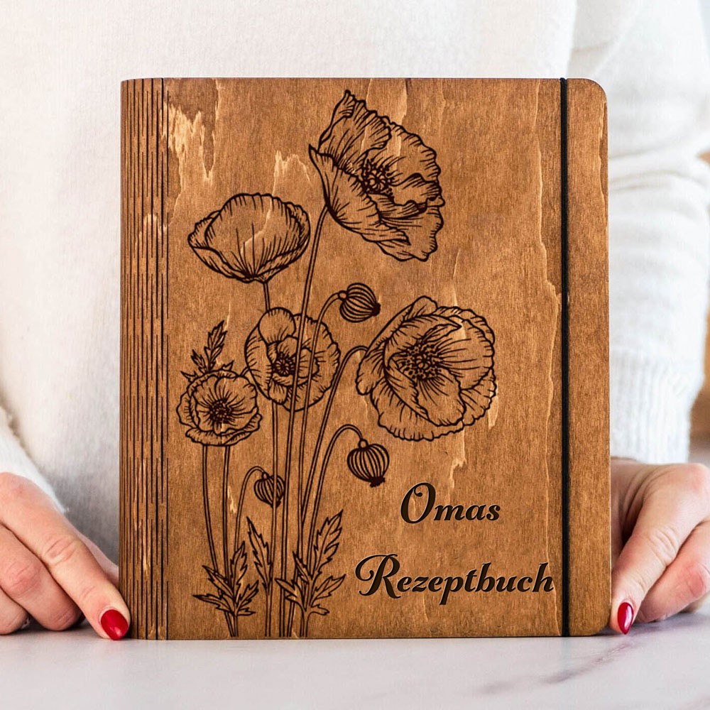 Personalisiertes Rezeptbuch, leerer Ordner, individuell graviertes Holzjournal – das perfekte Weihnachtsgeschenk für Mama und Oma