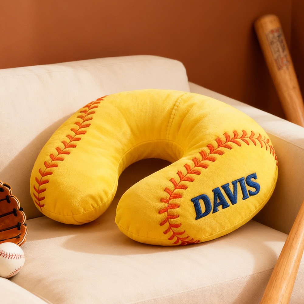 Personalisiertes Softball-Kissen in U-Form mit individuellem Namen – Geschenkidee für Softball-Fans – Weihnachtsgeschenk für Softball-Liebhaber
