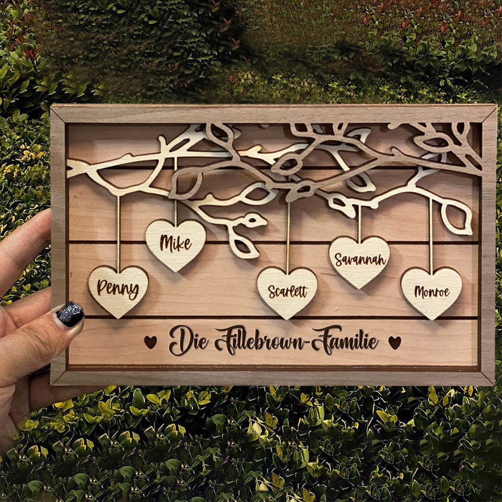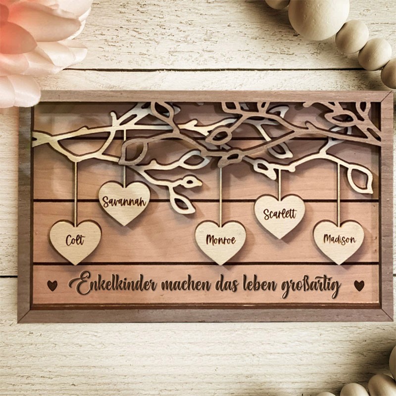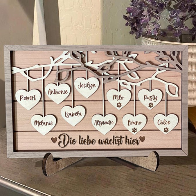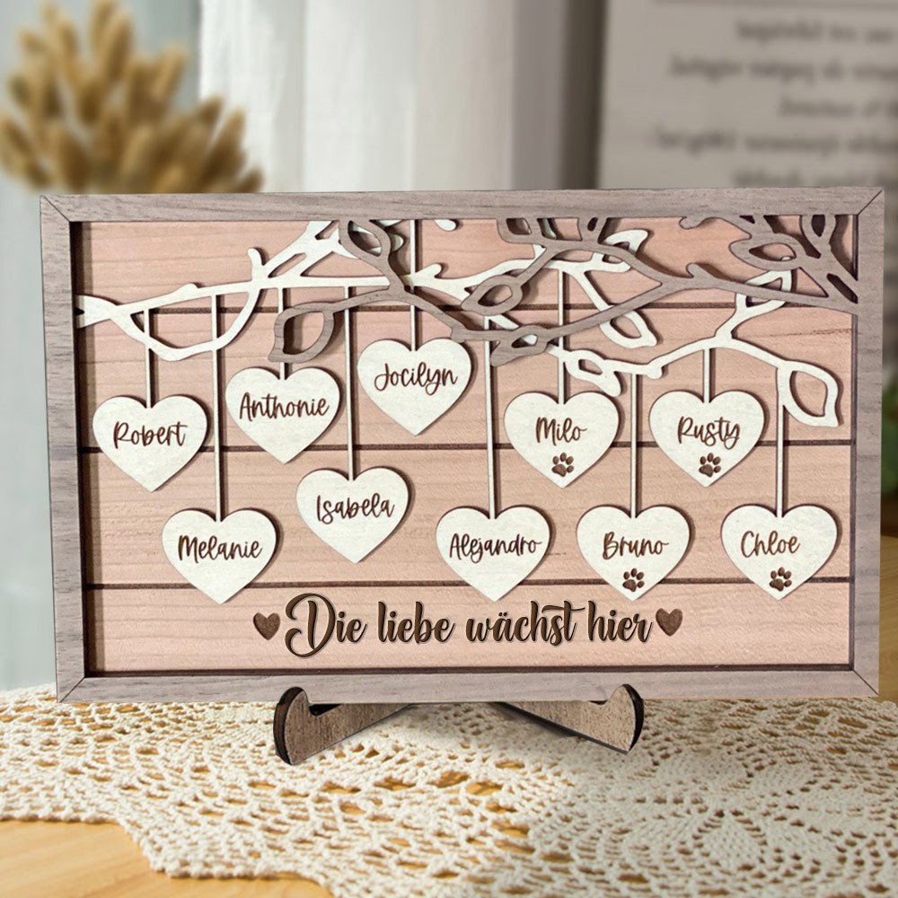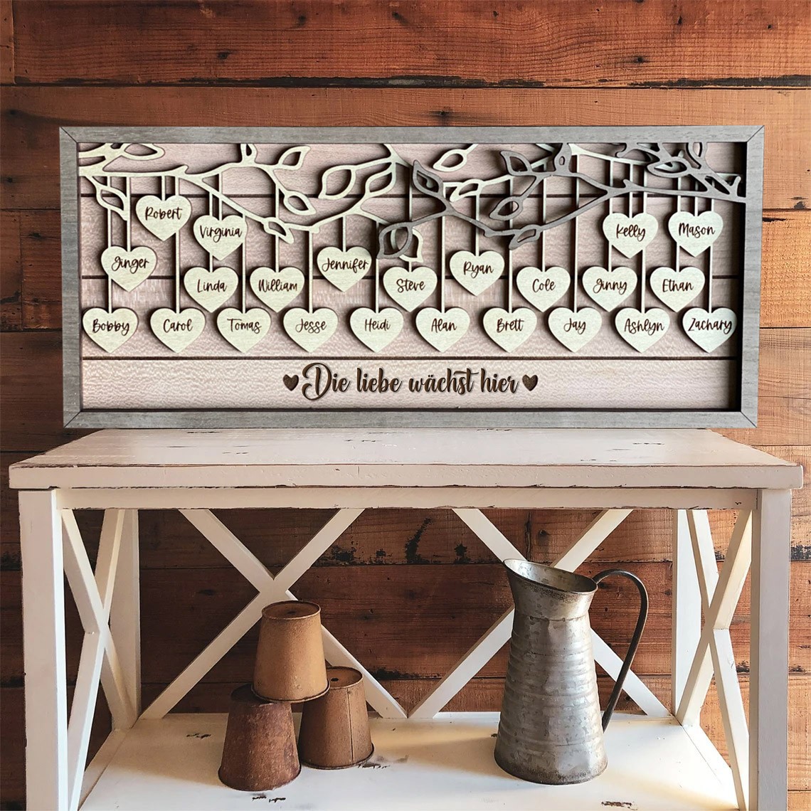 „Liebe wächst hier“ Personalisiertes Stammbaumschild aus Holz mit Kindernamen, einzigartiges Muttertagsgeschenk für Mutter, Oma, Familienandenken