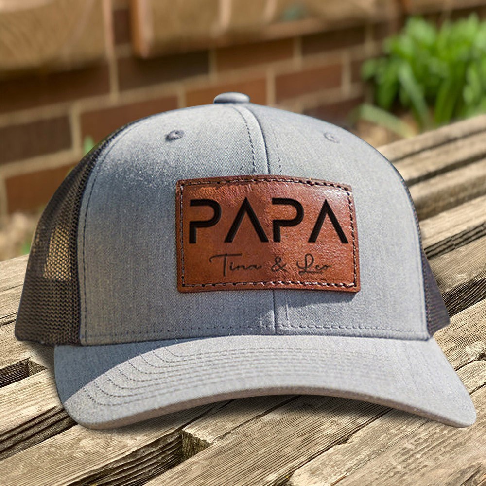 Personalisierte Papa-Mütze aus echtem Leder mit Kindernamen, Geschenkideen für neuen Papa, einzigartiges Geschenk für Papa