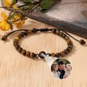 Individuelles Armband mit Fotoprojektion aus Tigerauge-Steinperlen und Bild im Inneren – Ideen für Familienandenken und Geschenke