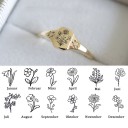 Personalisierter Verlobungsring mit Geburtsblumenstrauß für Frauen, Gravur, 925 Sterling Silber, Statement-Blumenring, einzigartiges Geschenk für Mama, Oma, Muttertagsgeschenk, Geburtstagsgeschenk