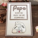 Personalisiertes Papa-Schild, Holzschild mit Umarmungsbär, Puzzleteile, Rahmenschild mit Kindernamen, personalisiertes Familiengeschenk für Papa, Opa, einzigartige Geschenkideen zum Vatertag