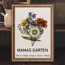 Personalisierter Bilderrahmen mit Geburtsblumenstrauß für Mama oder Oma, mit den Namen der Kinder – ein Erinnerungsgeschenk für Muttertag oder Weihnachten.