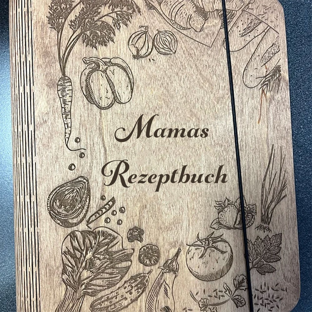 Rezeptbuch, Holzordner, individuell graviertes Notizbuch – das perfekte Weihnachtsgeschenk für Mama, ein Erinnerungsstück für sie