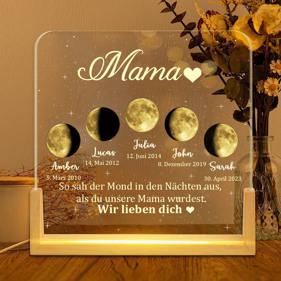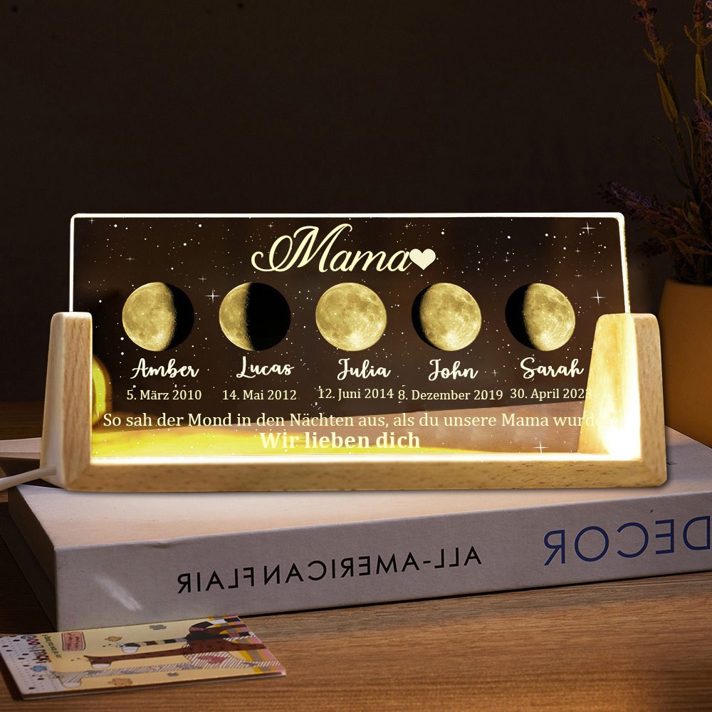 So sah der Mond in den Nächten aus, in denen du unsere Mama wurdest. Individuelles Mondphasen-Nachtlicht für Mama. Muttertagsgeschenk.