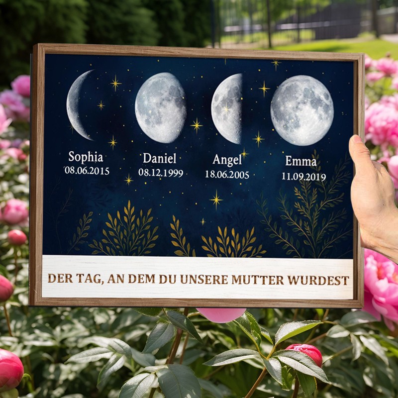 Sternenhimmel Mondphasenrahmen, Der Tag, an dem Du unsere Mama wurdest, Blätter und Sterne Nachthimmel, Muttertagsgeschenk, Mond und Sterne Familienschild Weihnachtsgeschenk