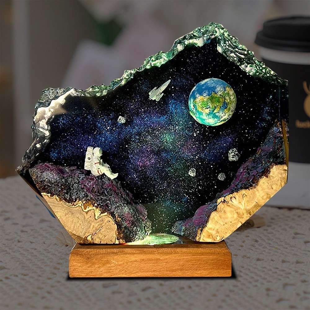 Universum Astronaut Epoxidharz Holzlampe Galaxie Nachtlicht Geburtstag Geschenkideen Einzigartiges Geschenk für Paare Nachttisch Geschenkideen für Sie