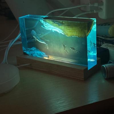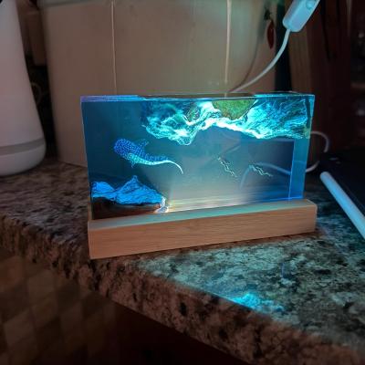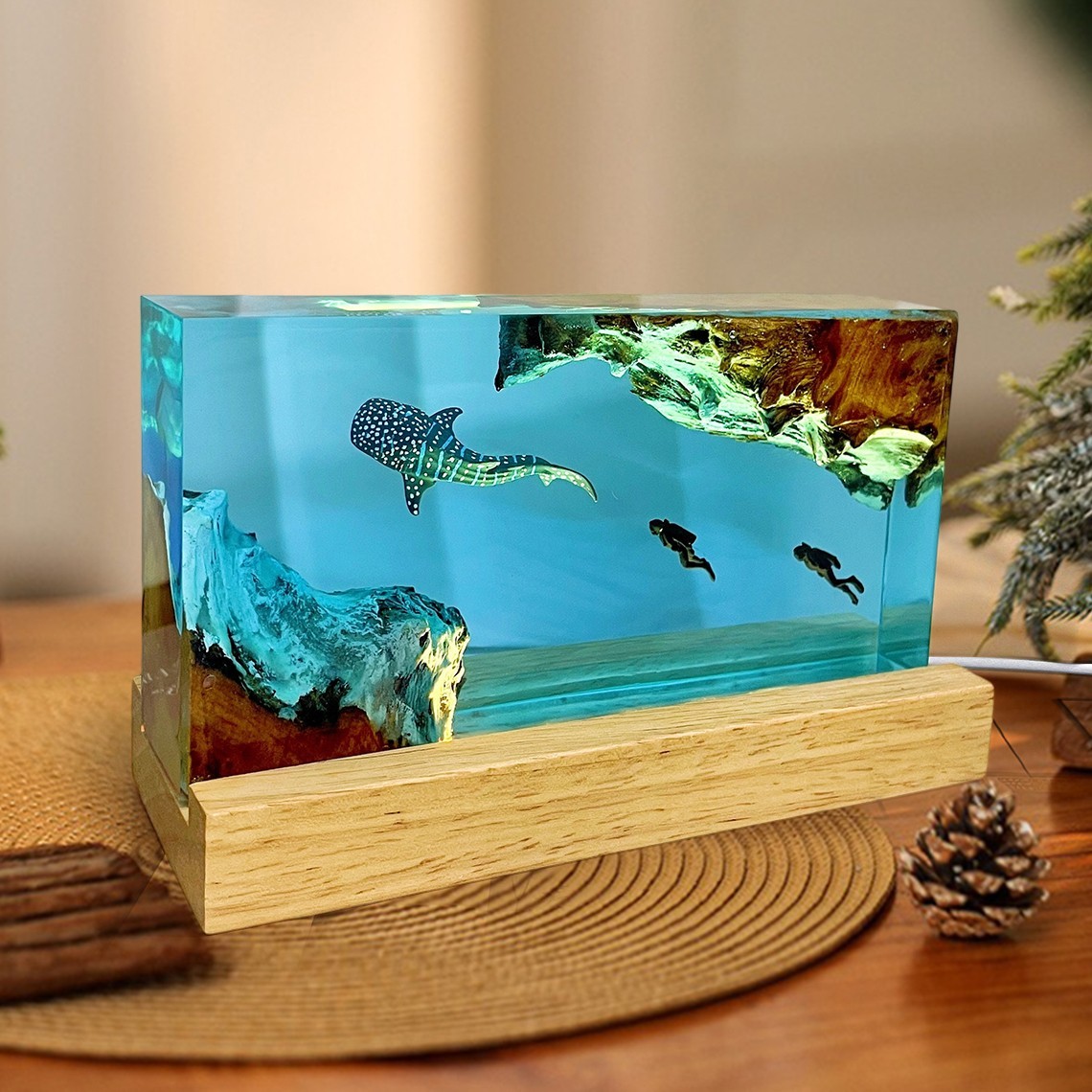Walhai Nachtlicht Würfel | Lampe aus Epoxidharz und Holz | Handgefertigtes Geschenk, Geburtstagsgeschenk