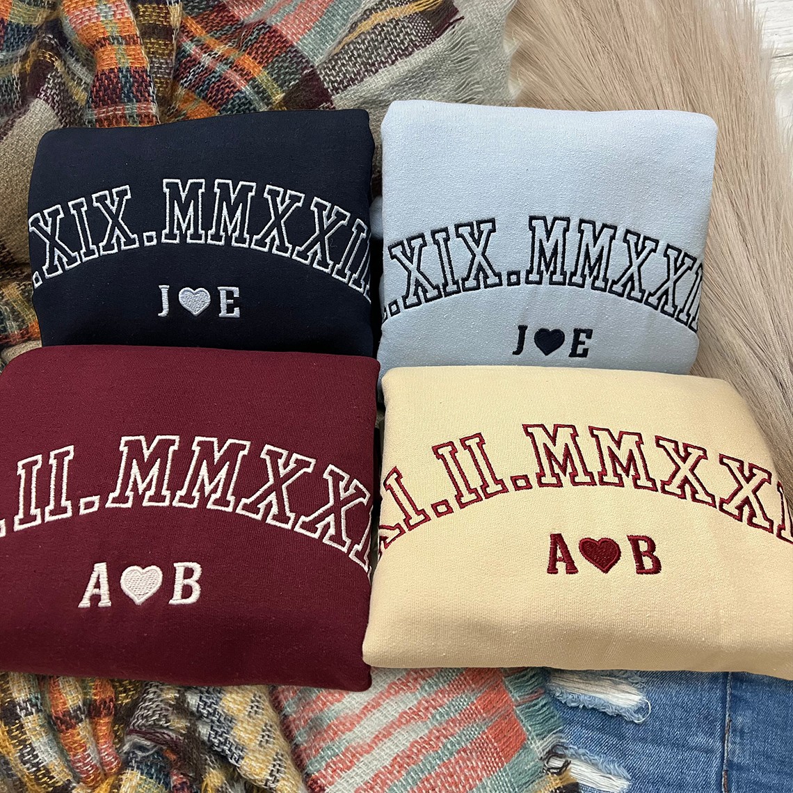 Embroidered Roman Numeral Hoodie Couples Matching Hoodies Personalized Couples Gifts Anniversary Gifts Valentine's Day Gift