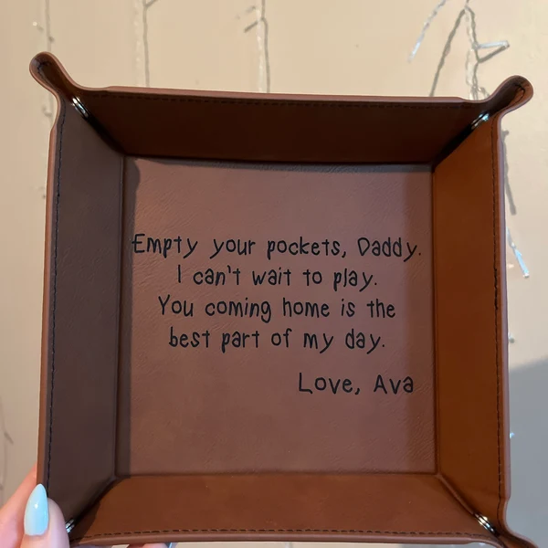 Empty Your Pockets Daddy Personalized Engraved Leather Valet Tray for Dad Christmas Gifts New Dad Gift