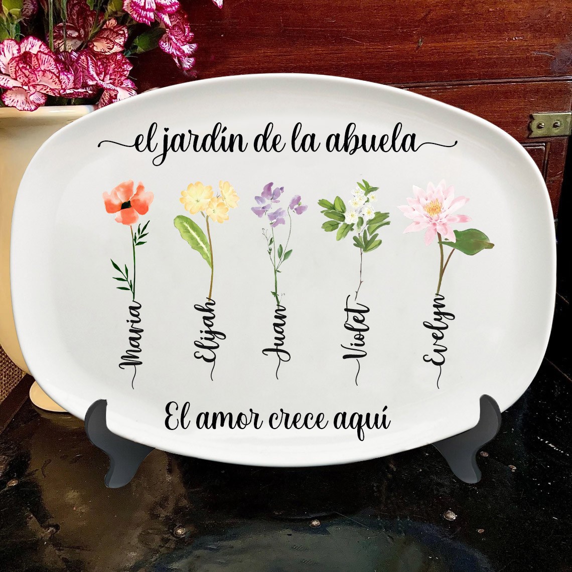 Bandeja de jardín personalizada con estampado de flores de nacimiento para mamás con nombres de bebés Regalo familiar único para mamá Abuela Ideas de regalos para el día de la madre Regalo de embarazo para mamá