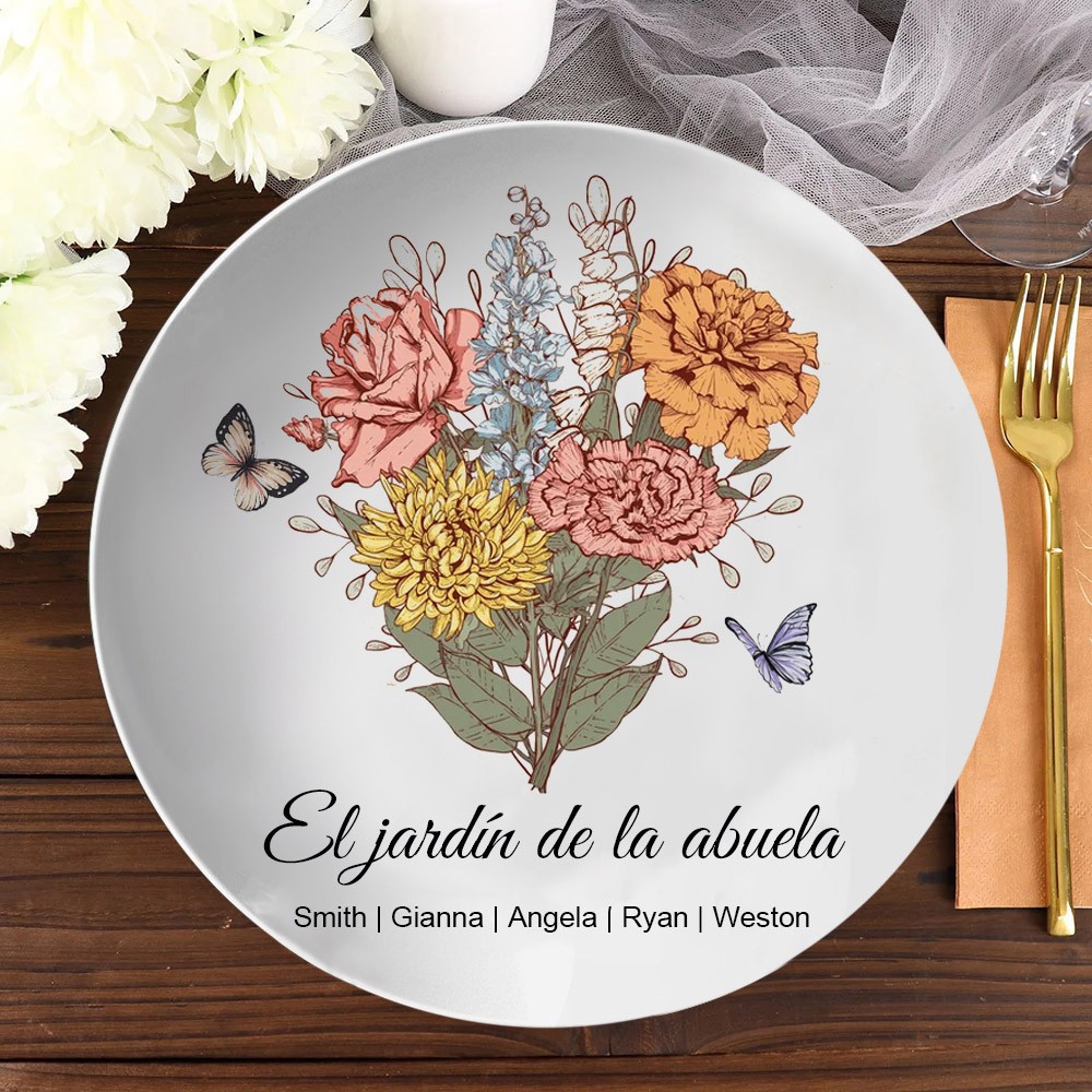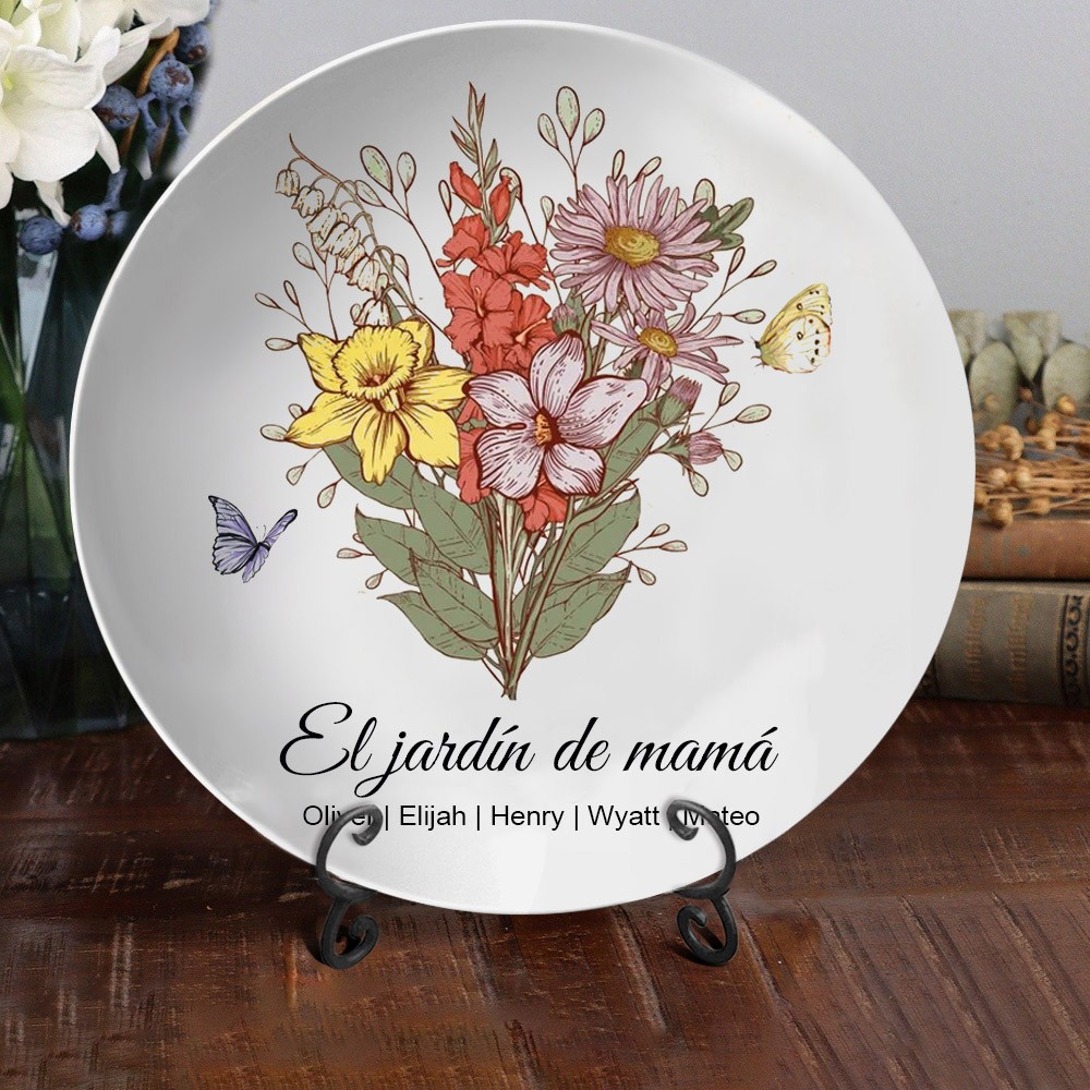 Bandeja de ramo familiar personalizada con nombres de bebés y flores de nacimiento, regalos de cumpleaños únicos para mamá, abuela, ideas de regalos para el día de la madre, regalo para baby shower