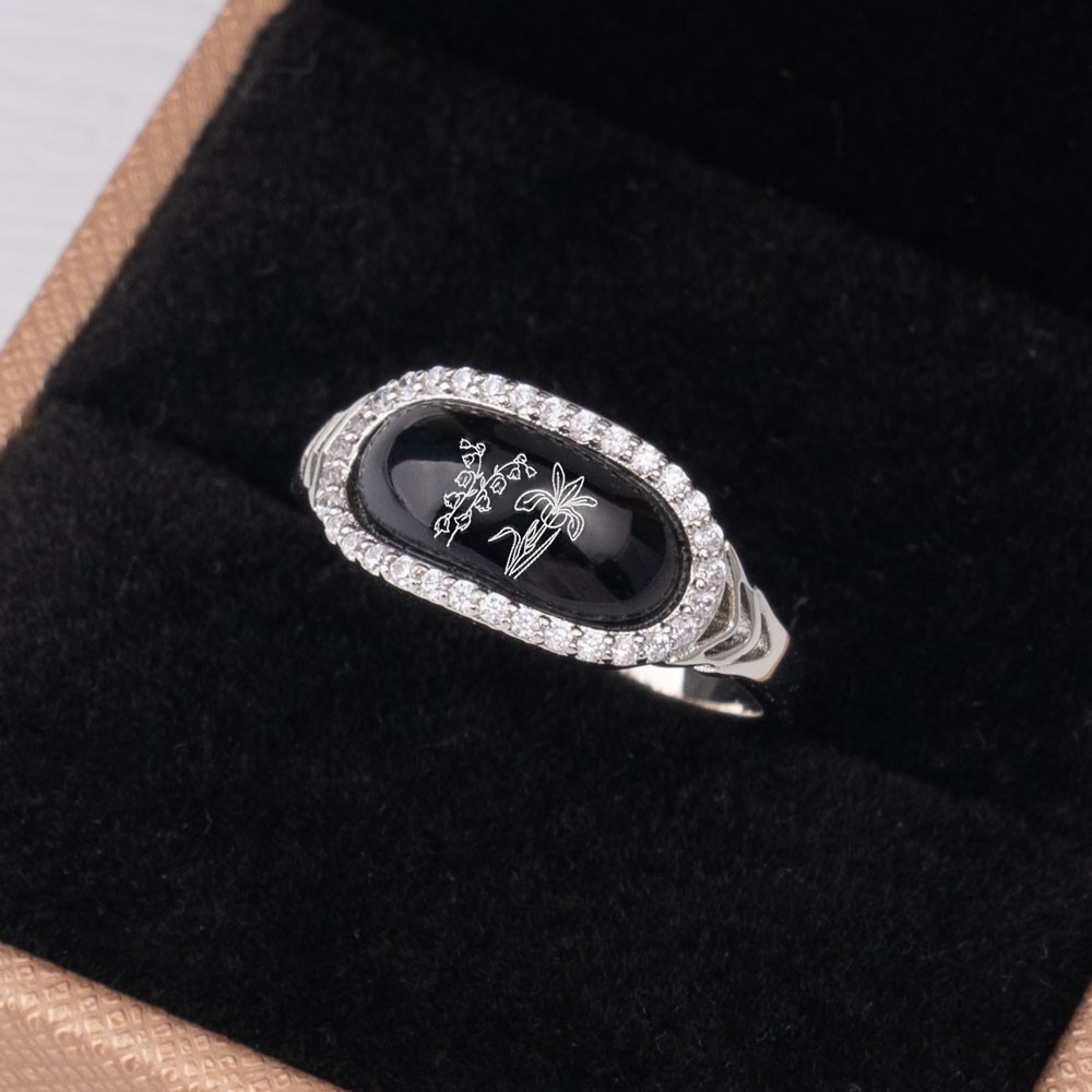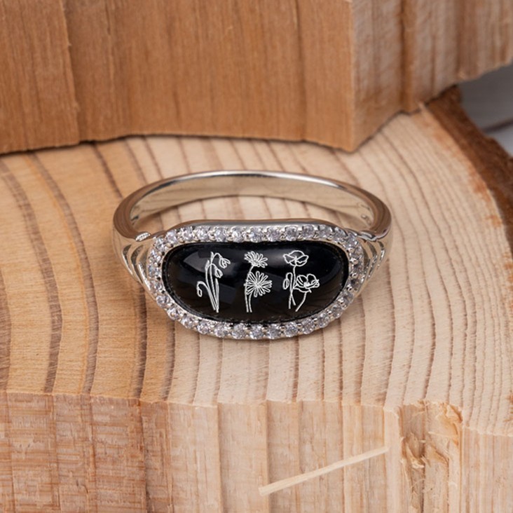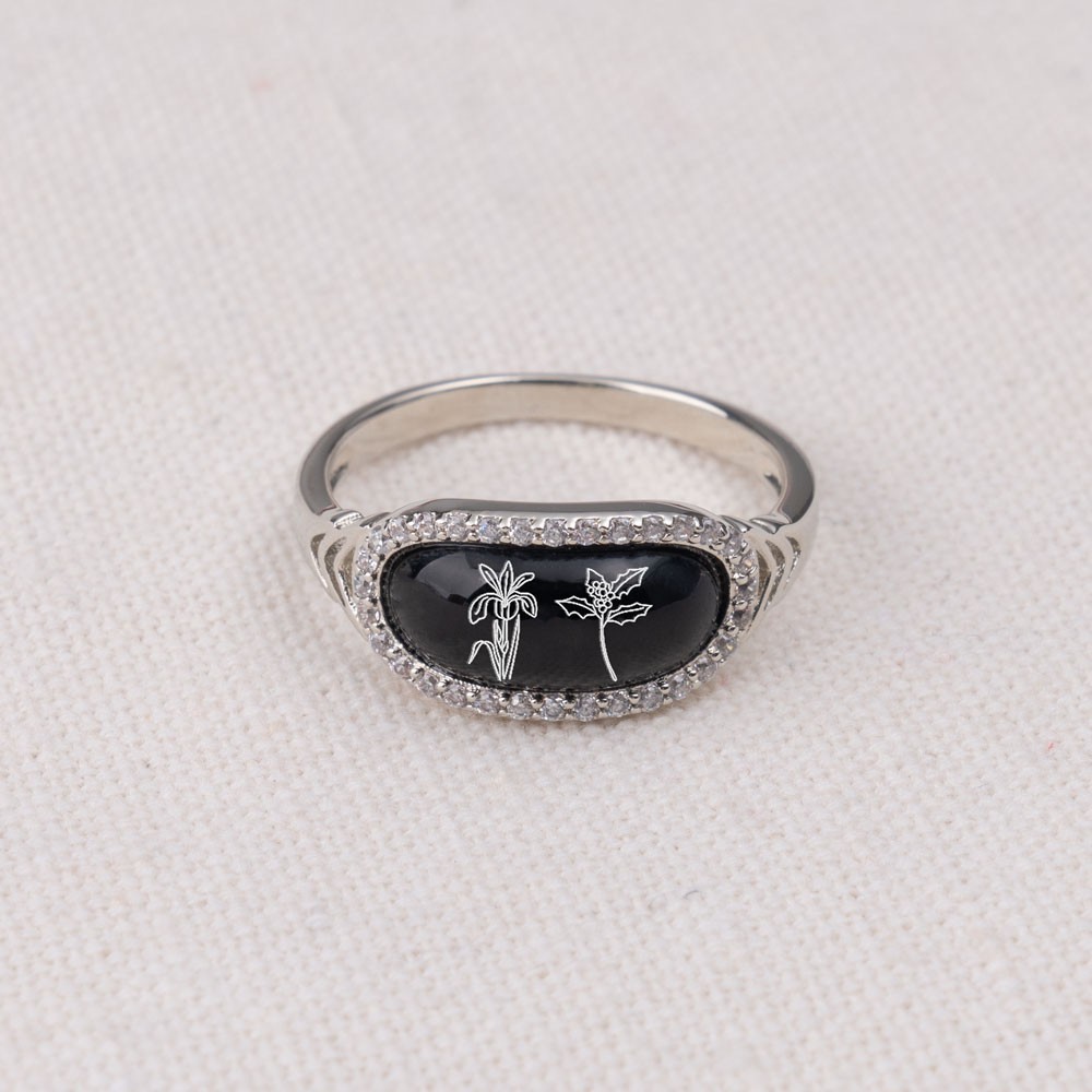 Anillo personalizado de flores de nacimiento de concha negra, regalo de cumpleaños único para mamá, abuela, ideas de regalos para el día de la madre