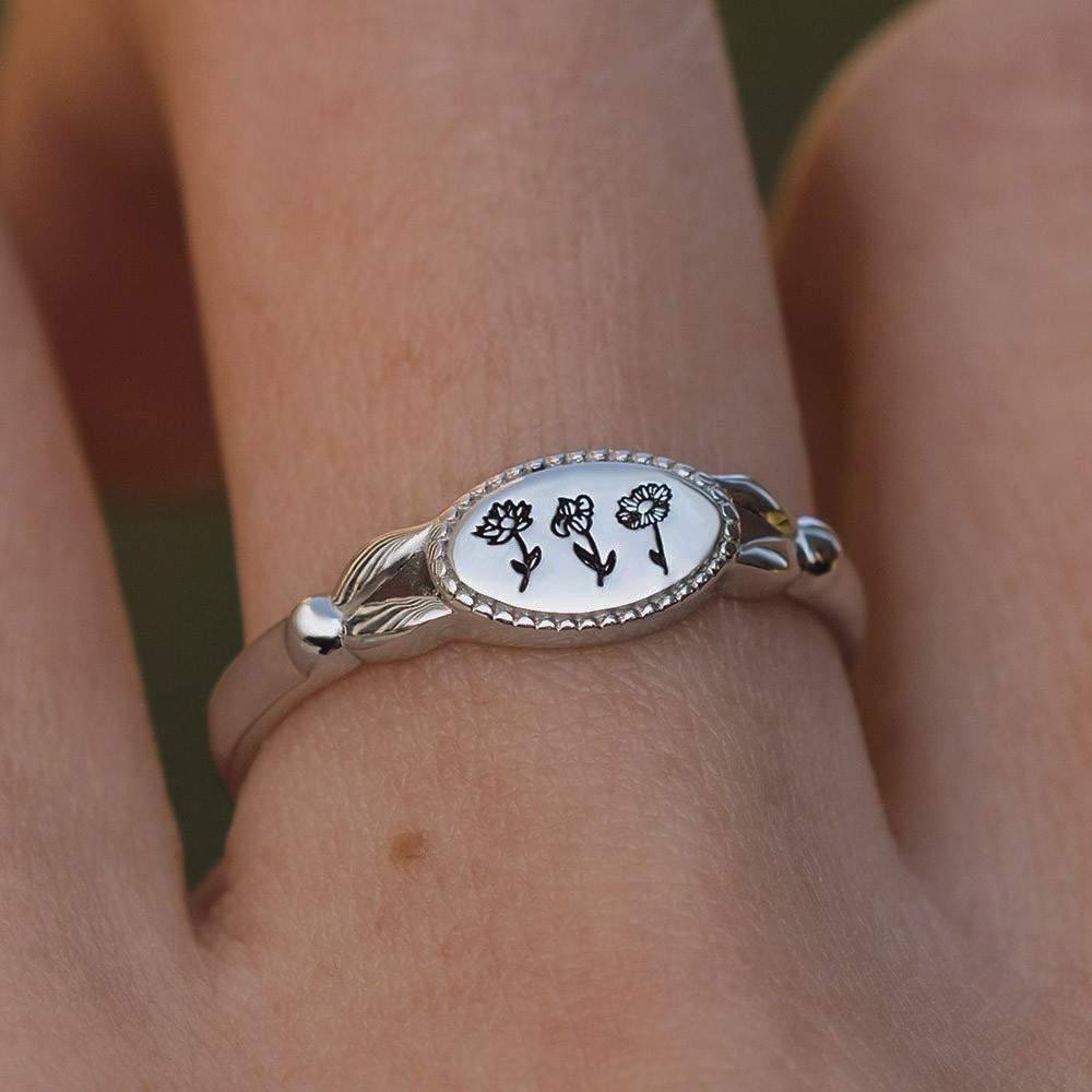 Anillo vintage de flor de nacimiento personalizado, regalo único para mamá, abuela, regalo de cumpleaños para el día de su madre, ideas de regalos