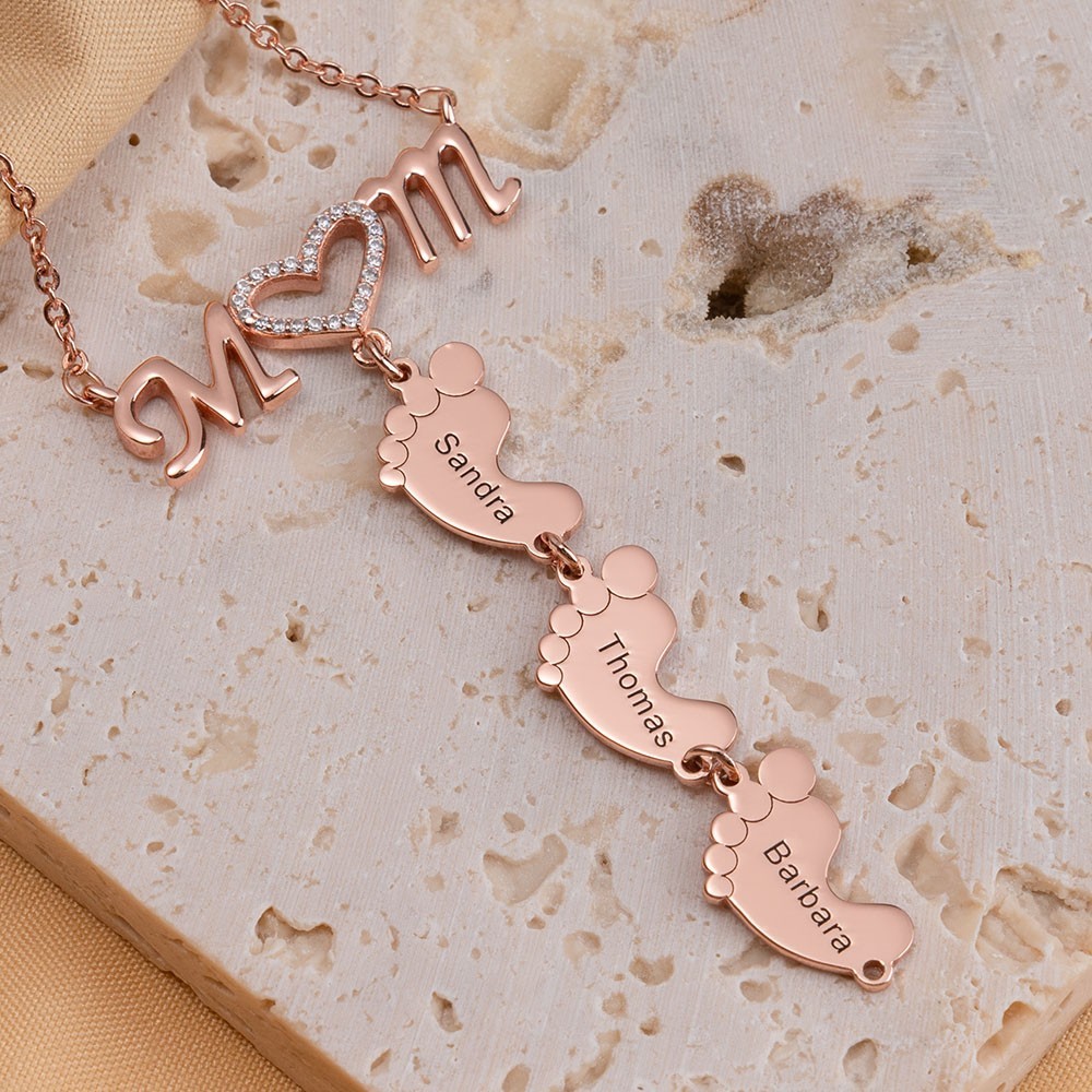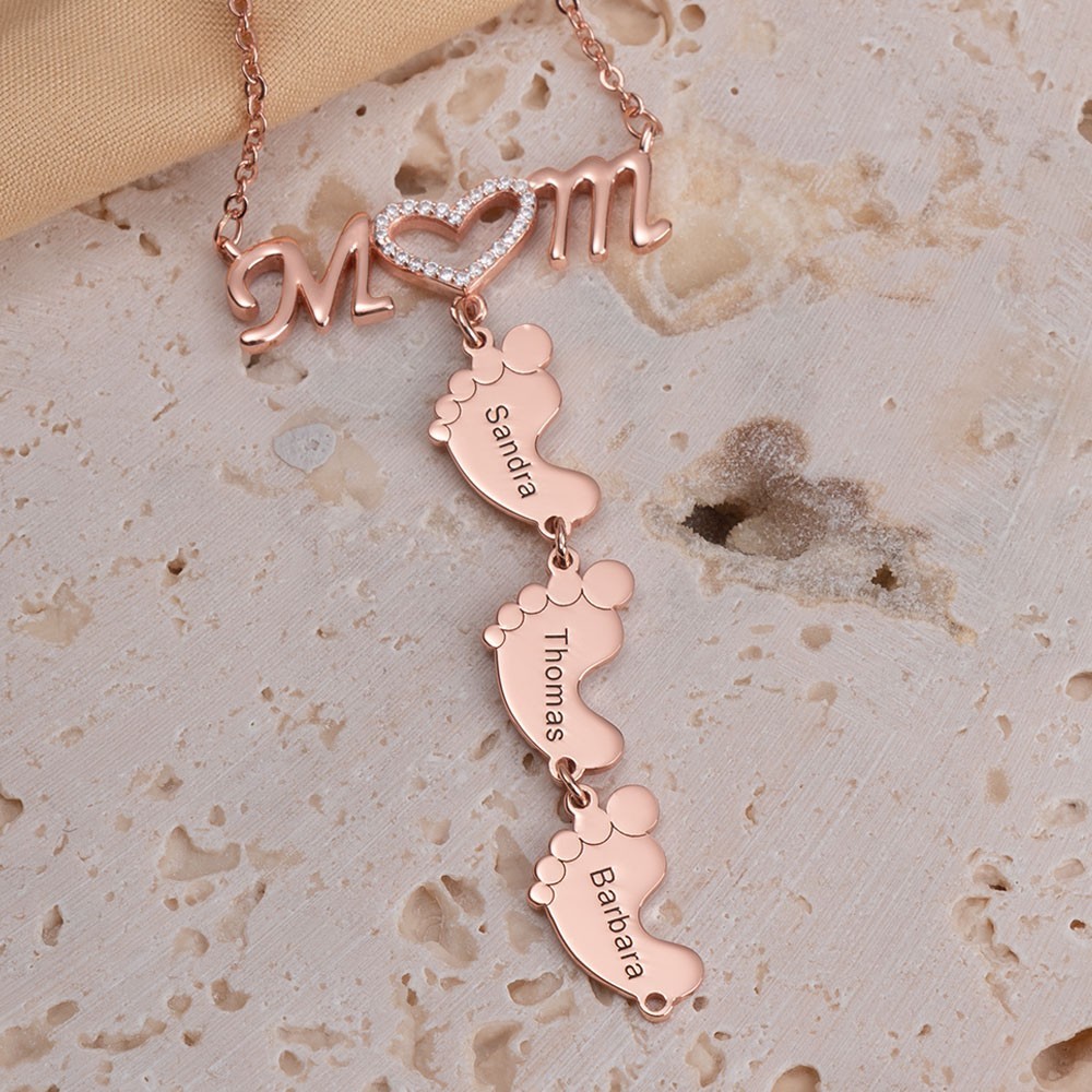 Collar personalizado con incrustaciones para mamá y colgante de pies de bebé. 1-10 colgantes. Regalo único para mamá, abuela, ideas de regalo para el Día de la Madre.