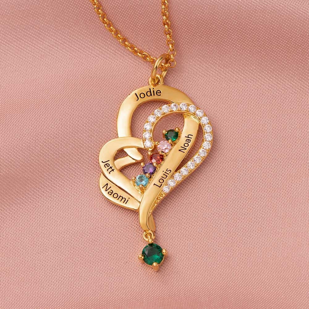 Collar personalizado con nombre grabado en forma de corazón y piedra natal Ideas de regalos para el día de la madre Regalos familiares para mamá y abuela