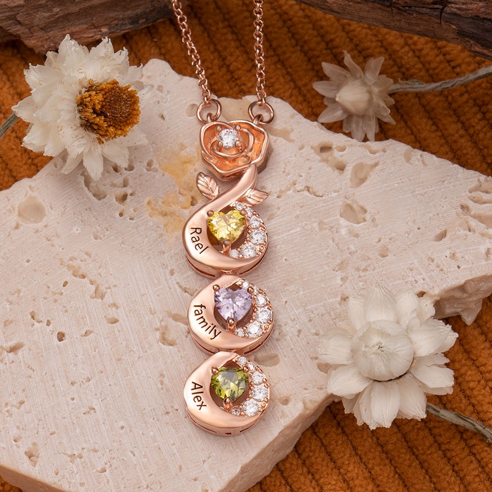 Collar personalizado con piedras de nacimiento y nombres de niños. Ideas de regalo para mamás primerizas. Regalo de cumpleaños personalizado para mamá y abuela.