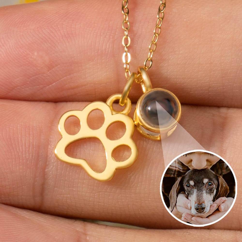 Collar personalizado de proyección de fotos con forma de pata de mascota con imagen en el interior, regalo único para amantes de las mascotas