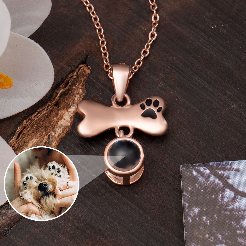 Collar personalizado de proyección fotográfica con estampado de pata de mascota con imagen en el interior, regalo único para los amantes de las mascotas