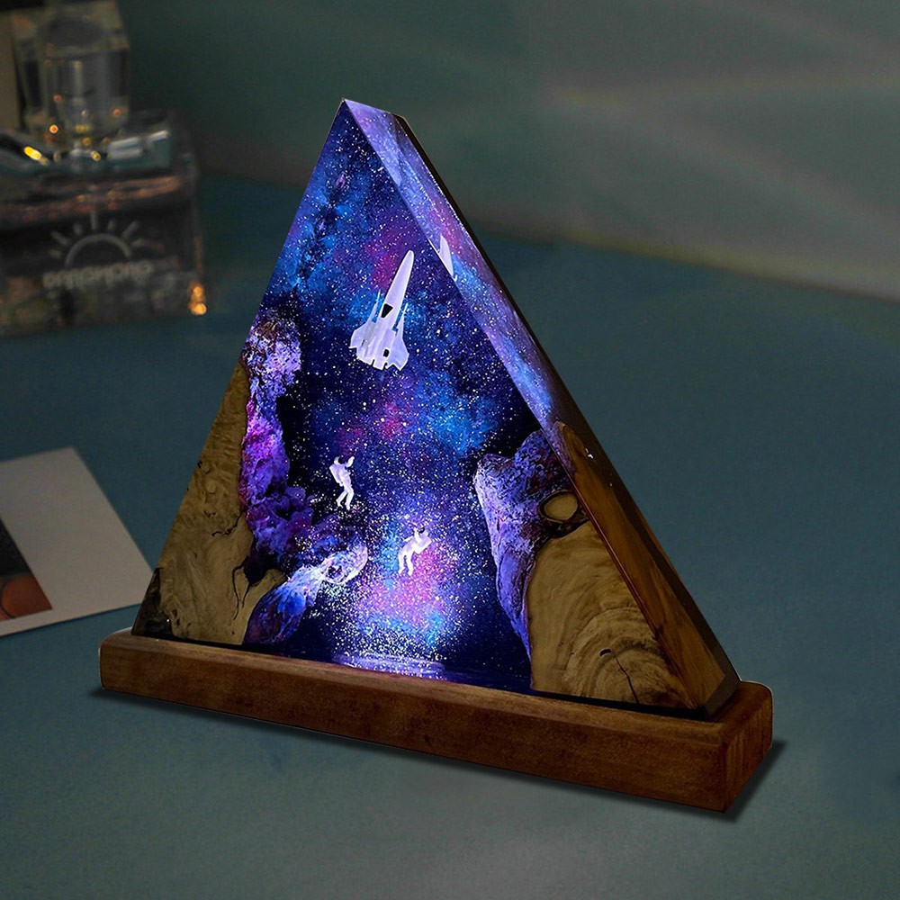 Galaxy Space Resina y madera Lámpara epoxi Astronauta Luz nocturna Ideas de regalos de Navidad Regalo de cumpleaños