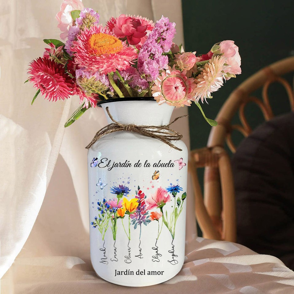 Impresión artística personalizada del jardín de mamá, flor de nacimiento, jarrón familiar con nombre de los niños, regalos únicos para mamá, abuela, regalos para el Día de la Madre