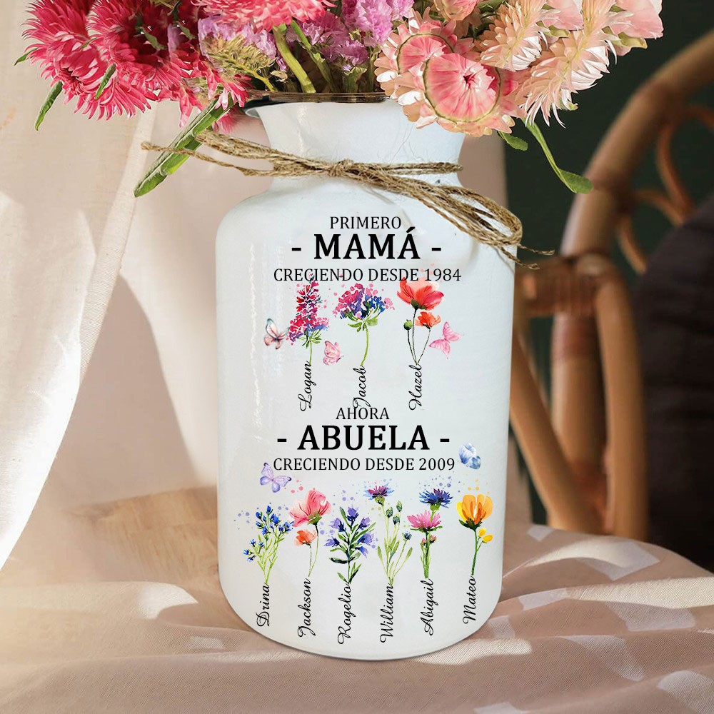 Impresión artística personalizada "Primera mamá ahora abuela", florero familiar con nombres de niños, regalo de cumpleaños único para mamá, abuela, ideas de regalo para el Día de la Madre