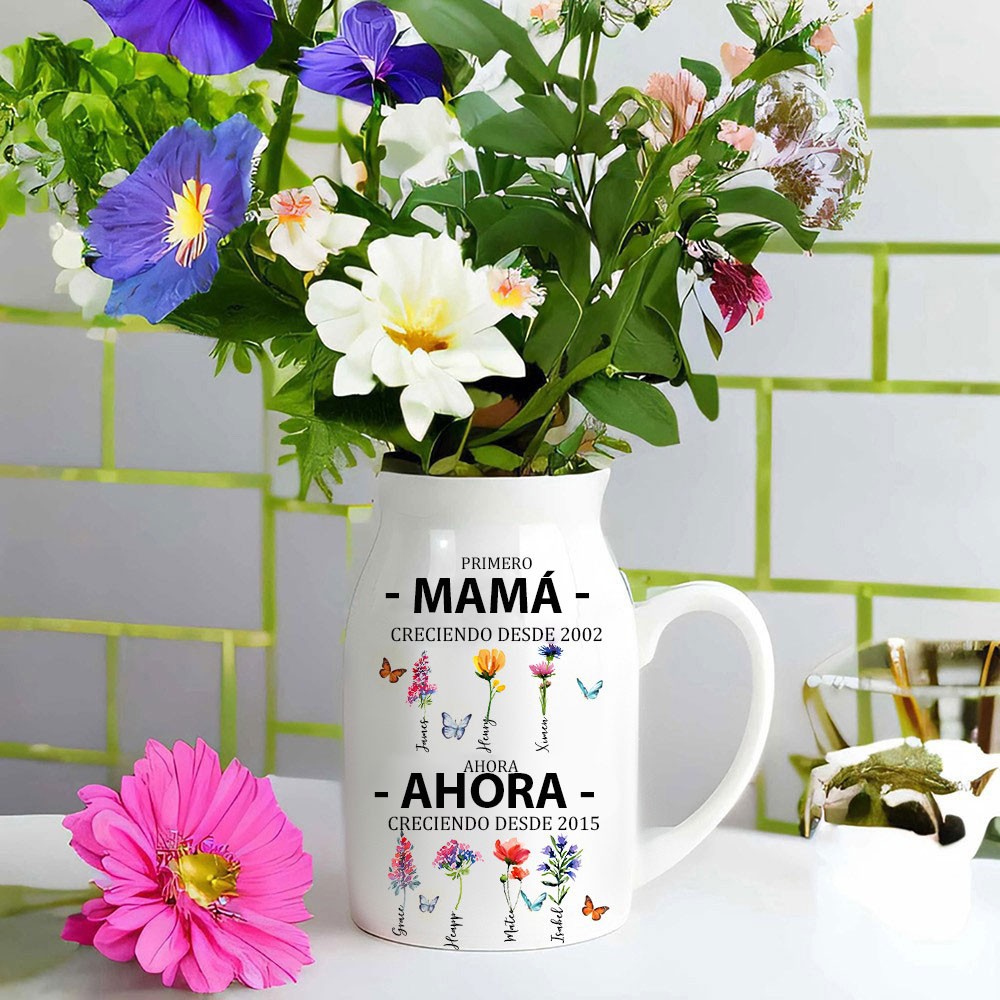 Impresión artística personalizada "Primera mamá, ahora abuela", flores del mes de nacimiento, jarrón con nombres de niños, regalo único de cumpleaños para mamá, abuela, ideas de regalos para el Día de la Madre