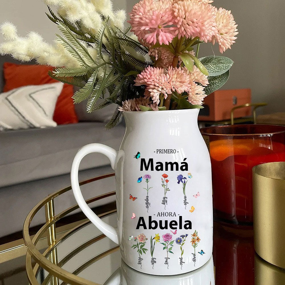 Impresión artística personalizada "Primera mamá, ahora abuela", jarrón de flores de nacimiento con nombres de niños, regalo único de recuerdo familiar para mamá, abuela, ideas de regalos para el Día de la Madre