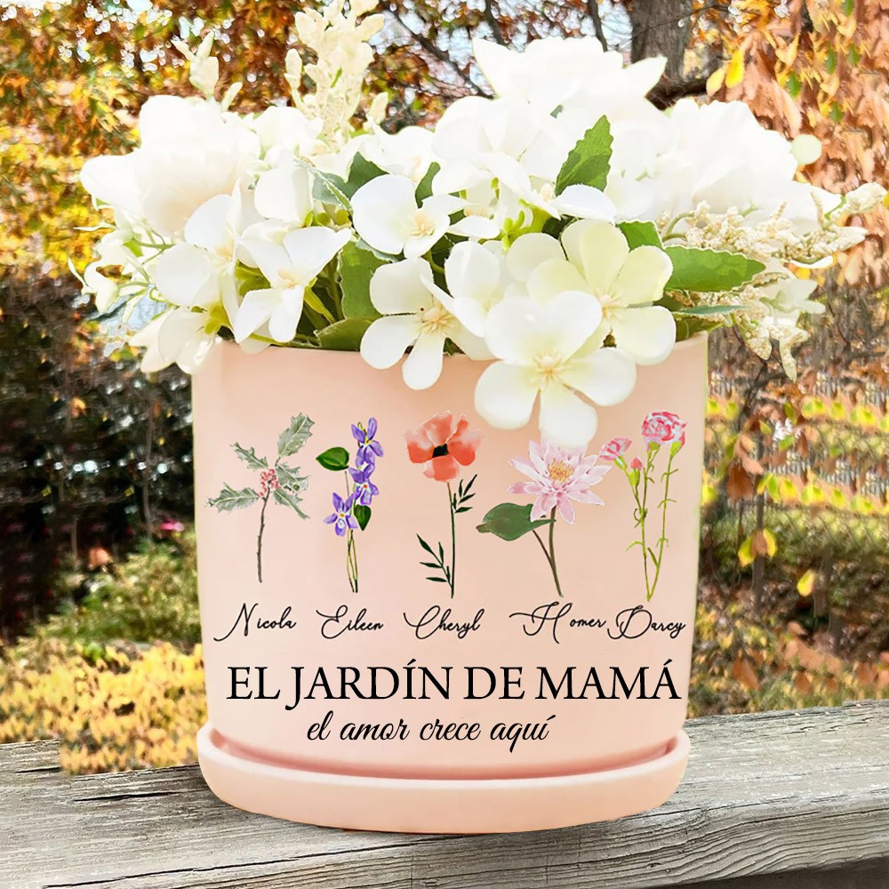 Jardín de la abuela Flor de nacimiento Maceta al aire libre Ideas de regalos para el día de la madre Regalos únicos para la abuela mamá