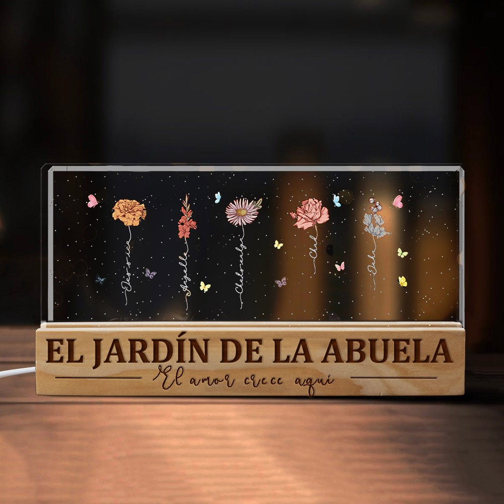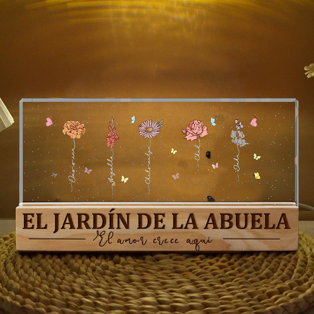 Jardín personalizado de mamá, flor de nacimiento, el amor crece aquí, regalos de luz nocturna de madera para mamá, abuela, ideas de regalos para el día de la madre