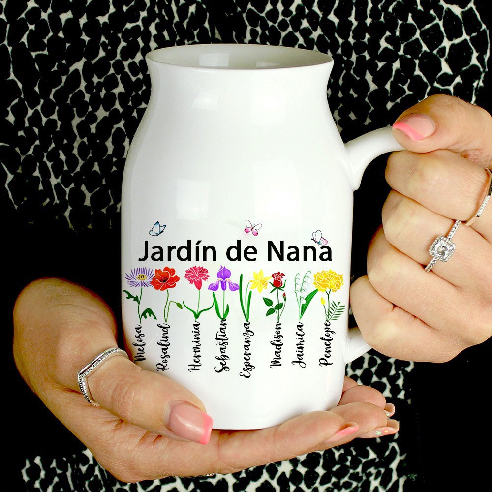 Jarrón de flores personalizado para el nacimiento de la abuela con el nombre de los nietos. Regalo de interior personalizado para mamá, abuela, regalo de cumpleaños único, ideas de regalo para el Día de la Madre.