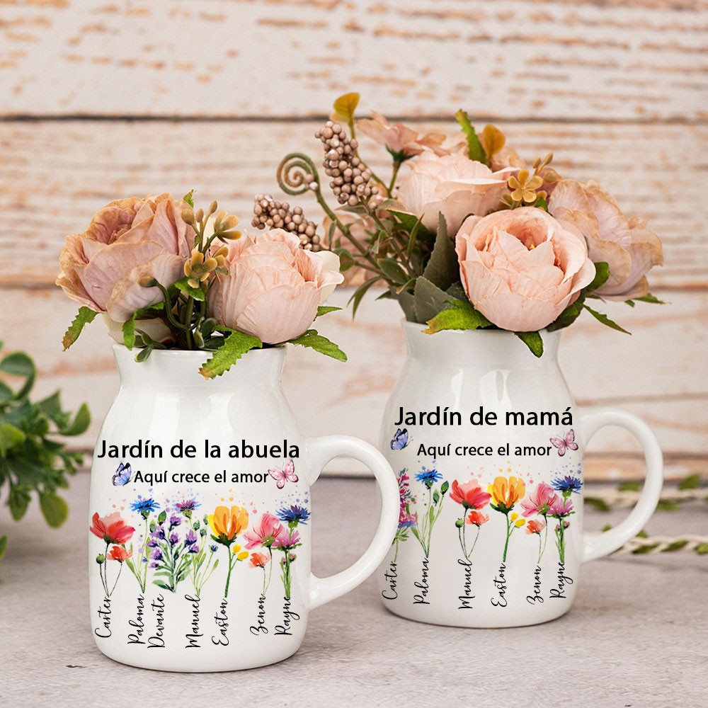 Jarrón familiar personalizado con flores de nacimiento para el jardín de mamá, impresión artística con nombres de niños, regalo de interior, cumpleaños único para mamá, abuela, idea de regalo única para el Día de la Madre