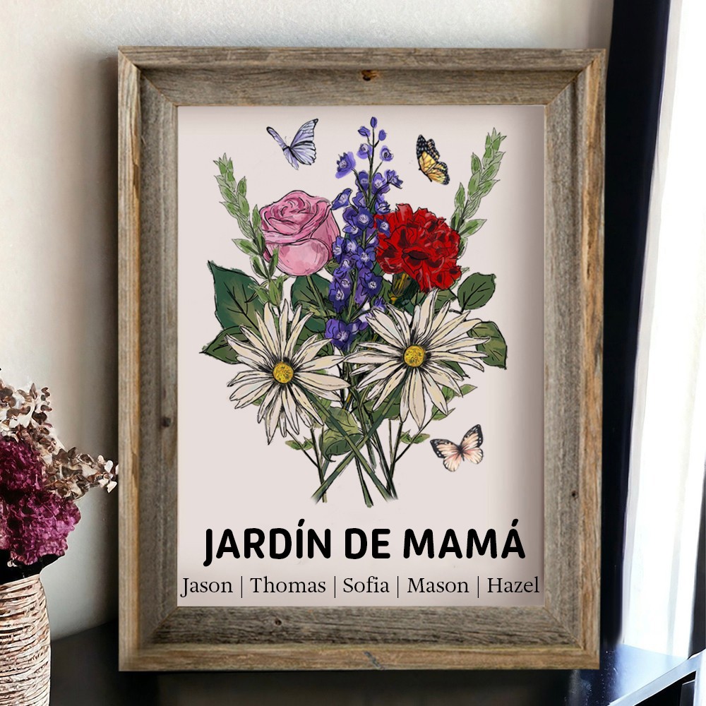 Lámina de Arte Personalizada: El Ramo Familiar Mason con Flores de Nacimiento. Marcos. Regalo Único para Abuela y Mamá. Ideas de Regalos de Navidad.