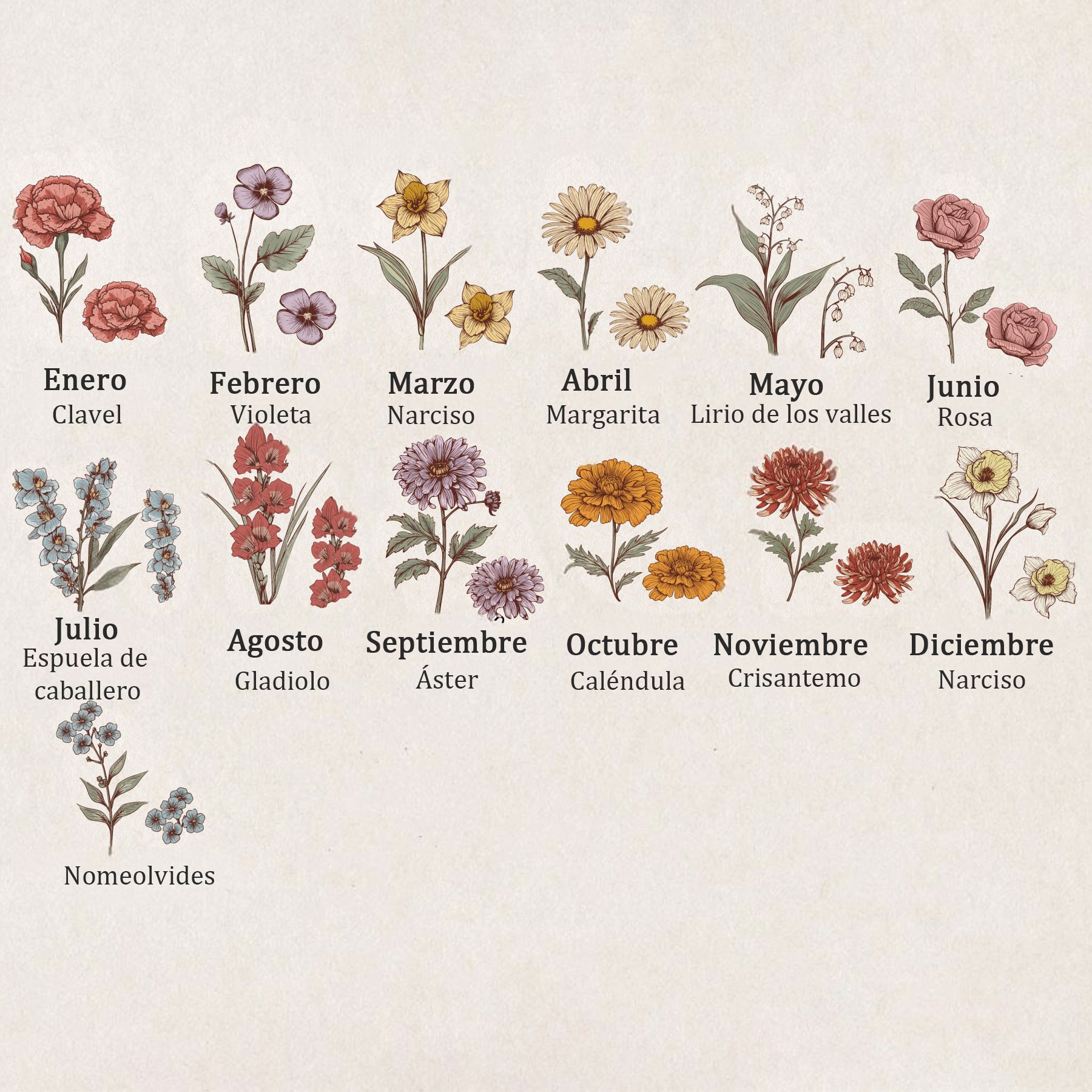 Lámina de arte personalizada "Ramo del Mes de Nacimiento" con nombres de niños, marco de madera, regalo personalizado para mamá o abuela, regalo único para el Día de la Madre.