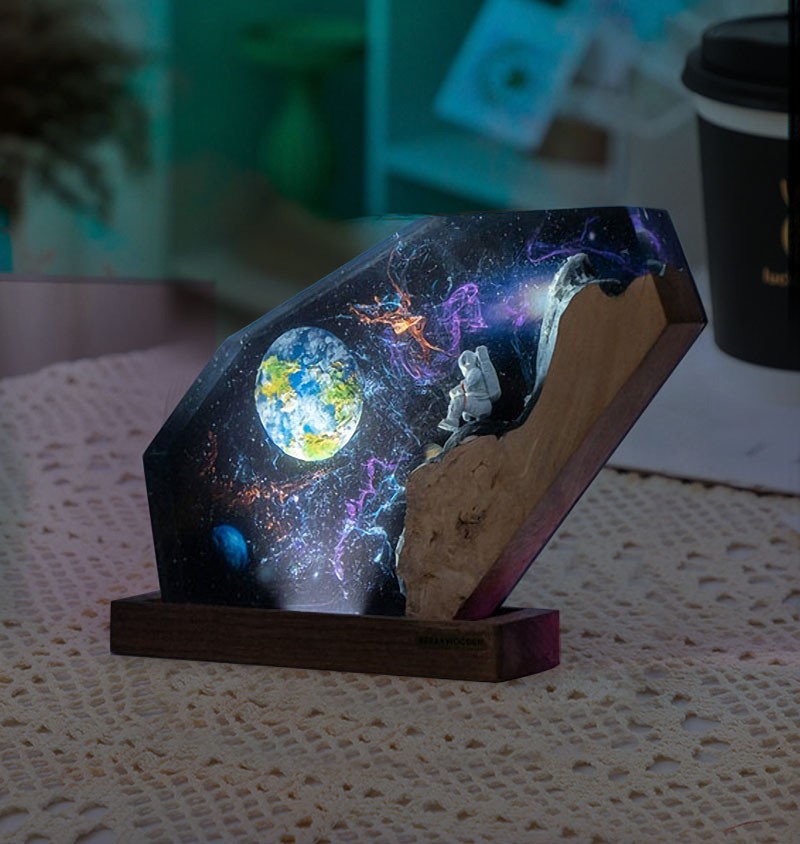 Lámpara epoxi interestelar de luz nocturna de resina y madera de galaxia espacial, decoración única para el hogar, regalo de Navidad