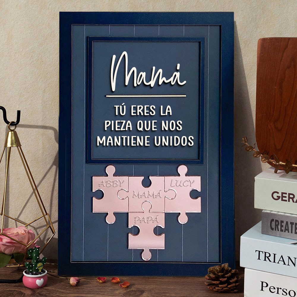 Letrero de madera personalizado para mamá: pieza de rompecabezas que nos une, regalo para el Día de la Madre