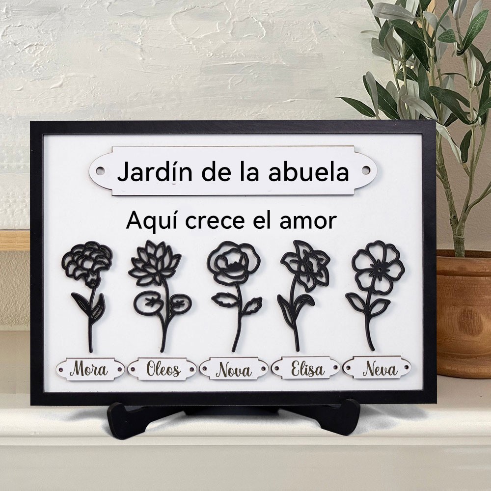 Letrero de marco personalizado de madera con las flores de nacimiento del jardín de mamá y los nombres de los niños - Regalo único para mamá, abuela, para cumpleaños o el Día de la Madre.