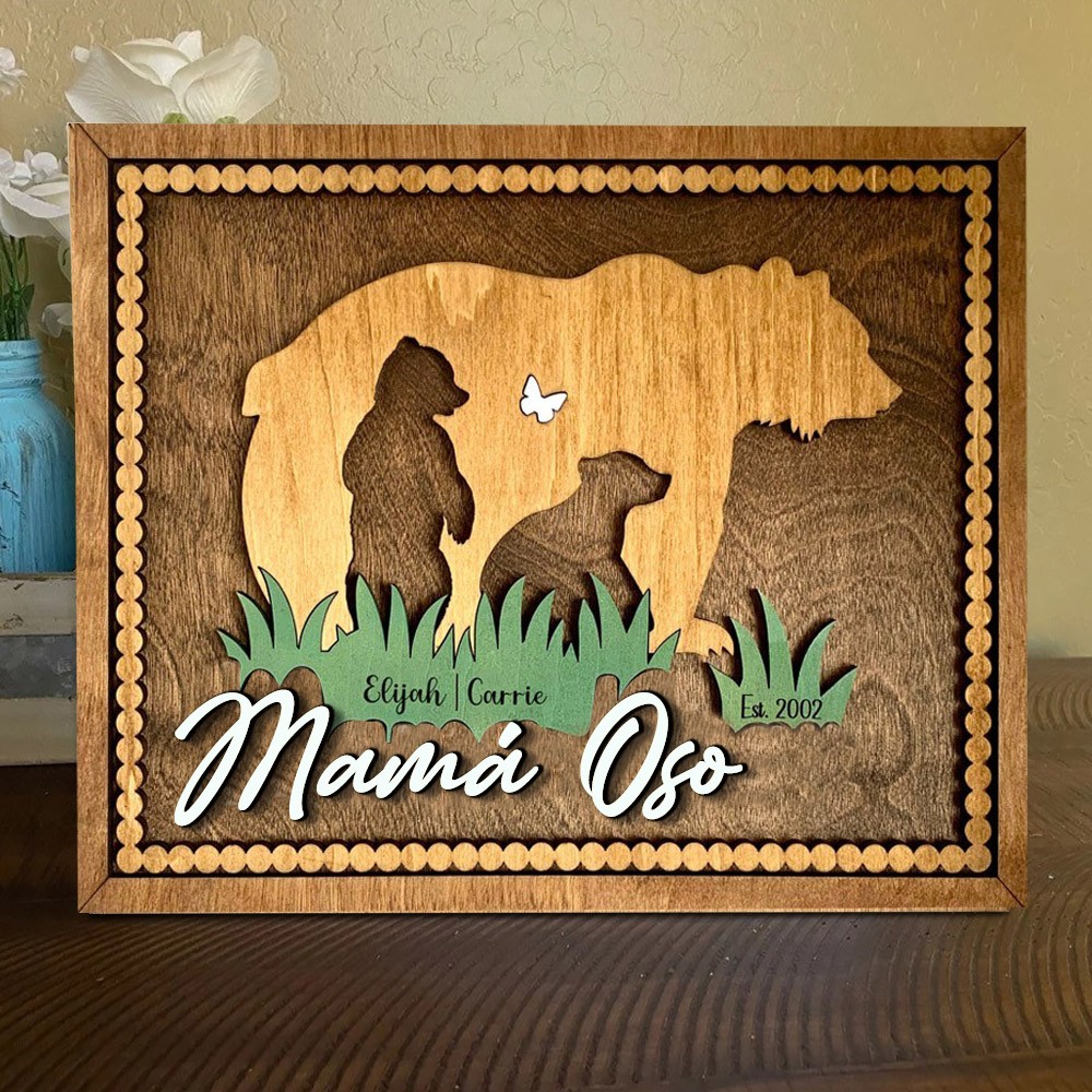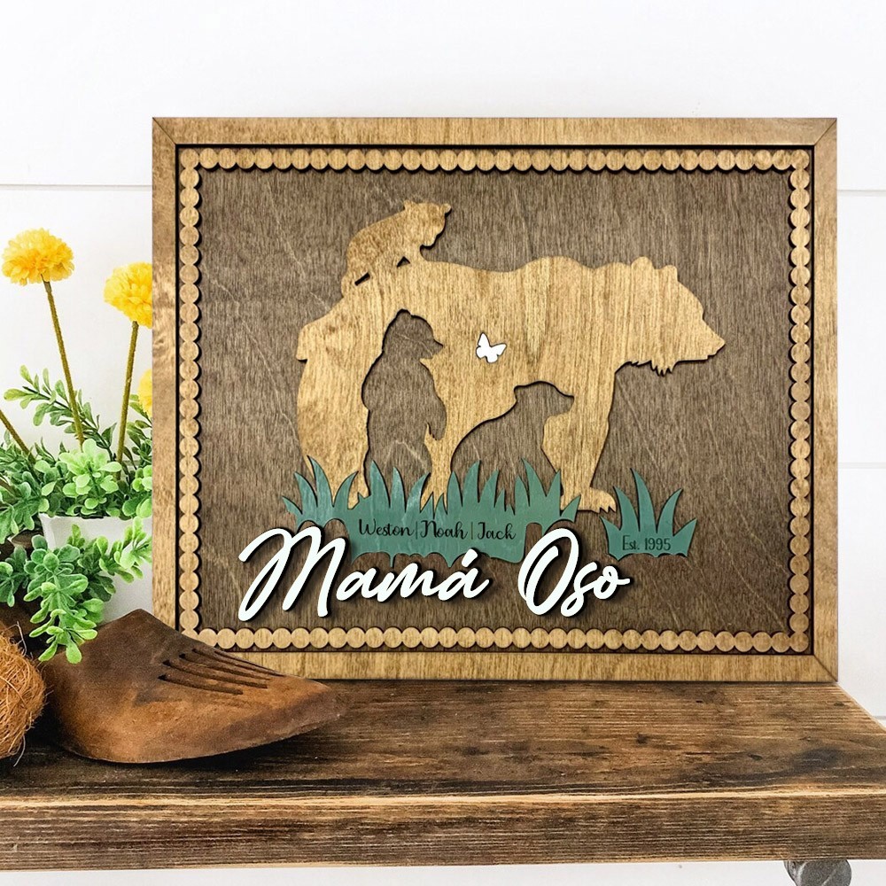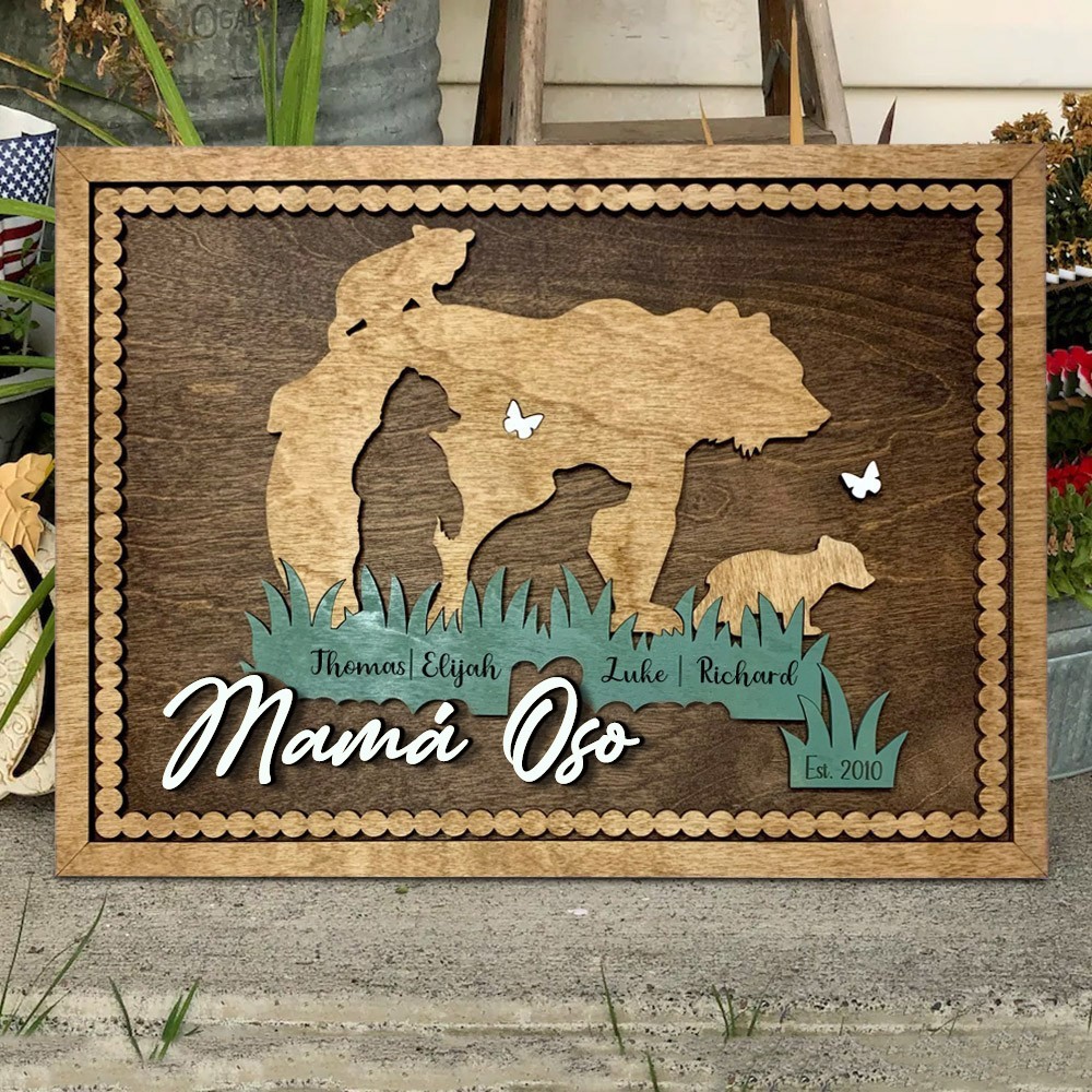 Letrero familiar de madera personalizado de mamá oso con nombres de niños, regalo de árbol de la vida para mamá, regalo único para abuela