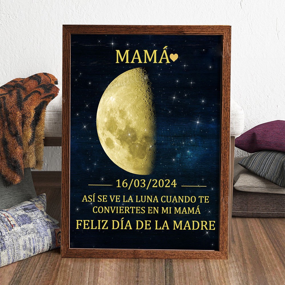 Letrero personalizado con marco de madera de fase lunar de mamá con fecha Regalos únicos para mamá Ideas de regalos para el día de la madre