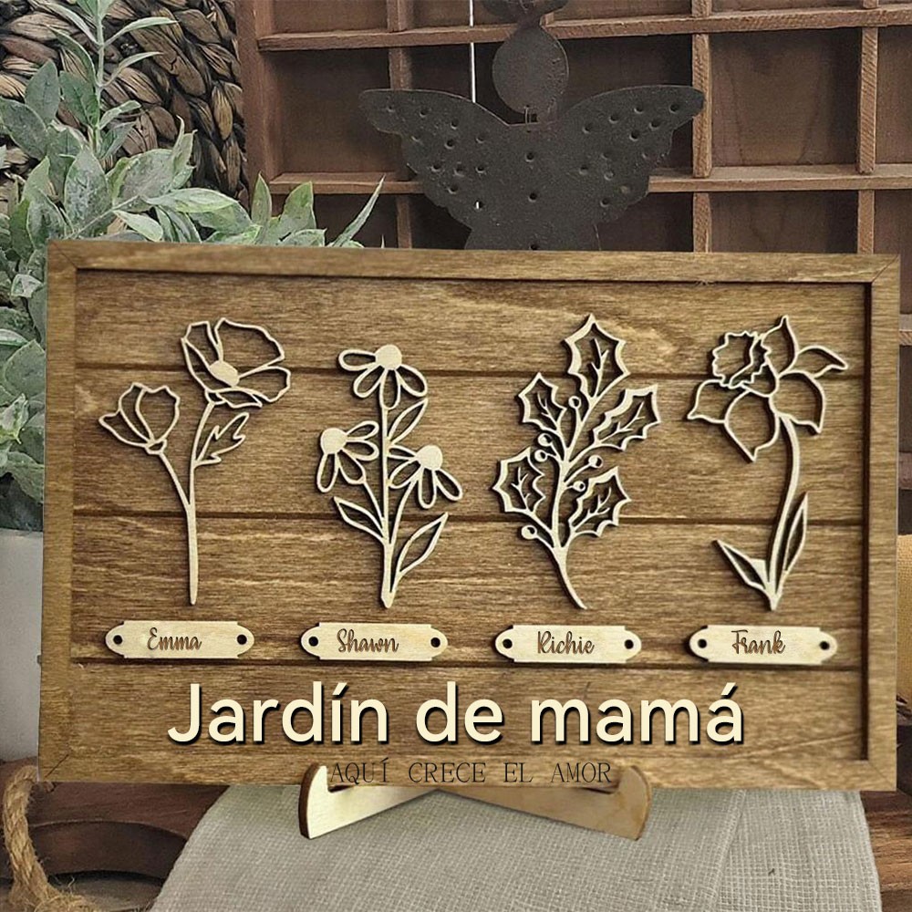 Letrero Personalizado de Marco de Flores de Nacimiento de Madera "El Jardín de la Abuela" con Nombres de Nietos - Regalo Único de Cumpleaños para Mamá, Abuela, Regalo del Día de la Madre