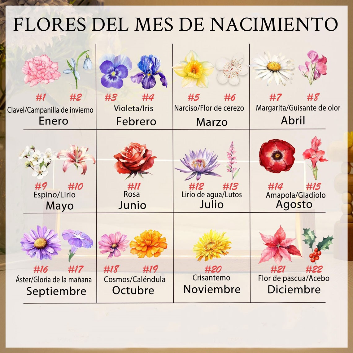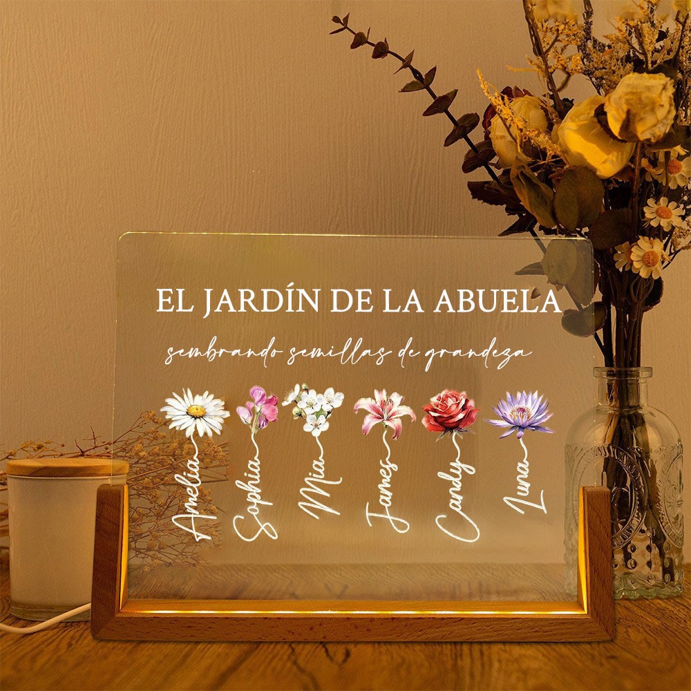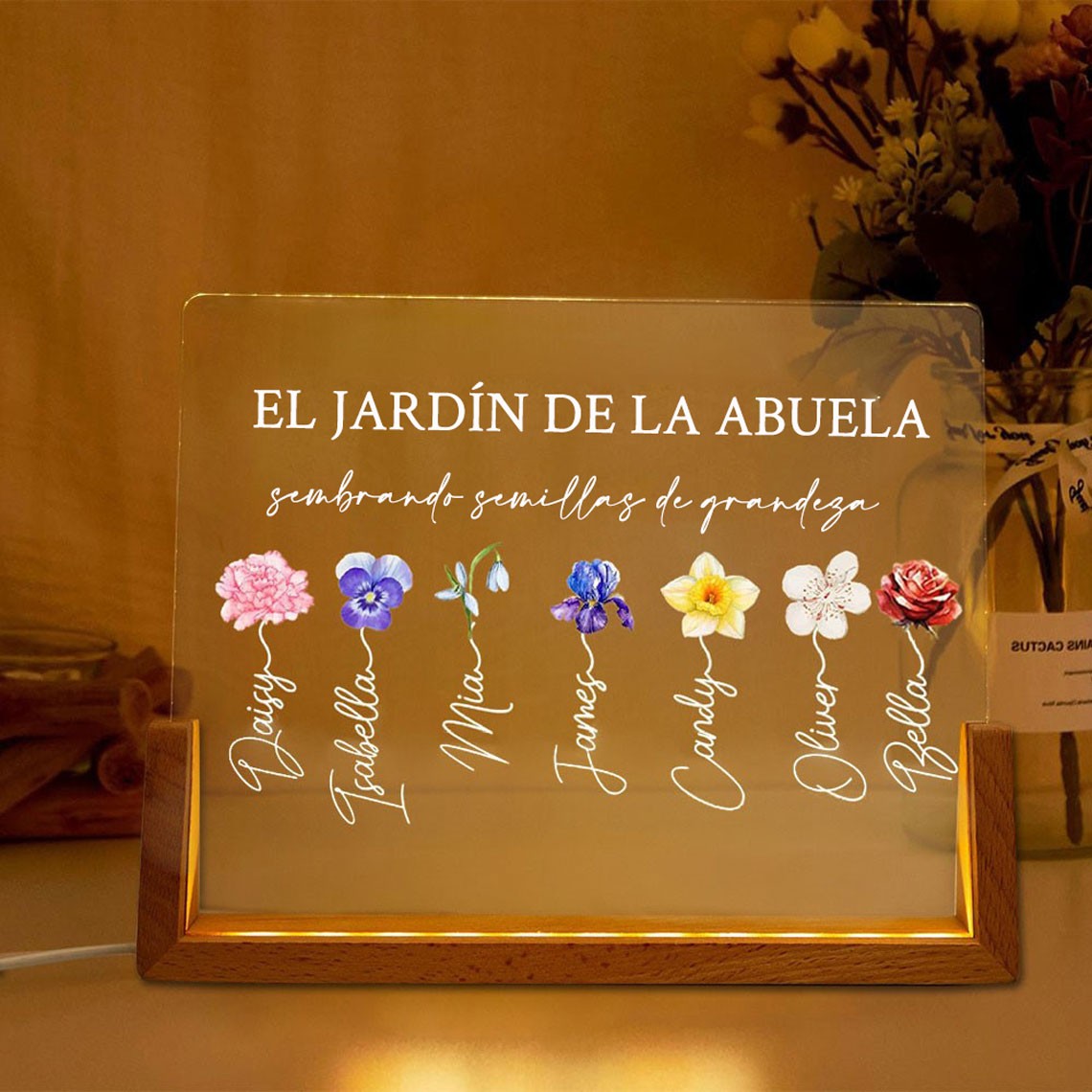 Luz de noche con flores personalizada para el mes de nacimiento de la abuela con nombres de niños. Regalo de cumpleaños único para la abuela. Ideas de regalo para el Día de la Madre.