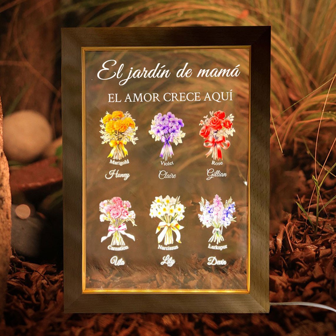 Luz de noche con flores personalizada para el mes de nacimiento de mamá con nombres de niños, regalo único para mamá, abuela y el Día de la Madre.