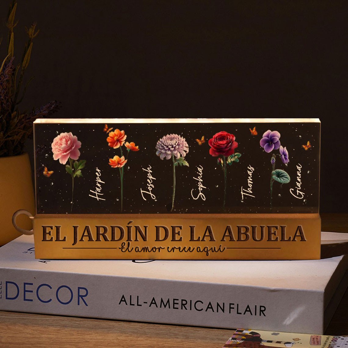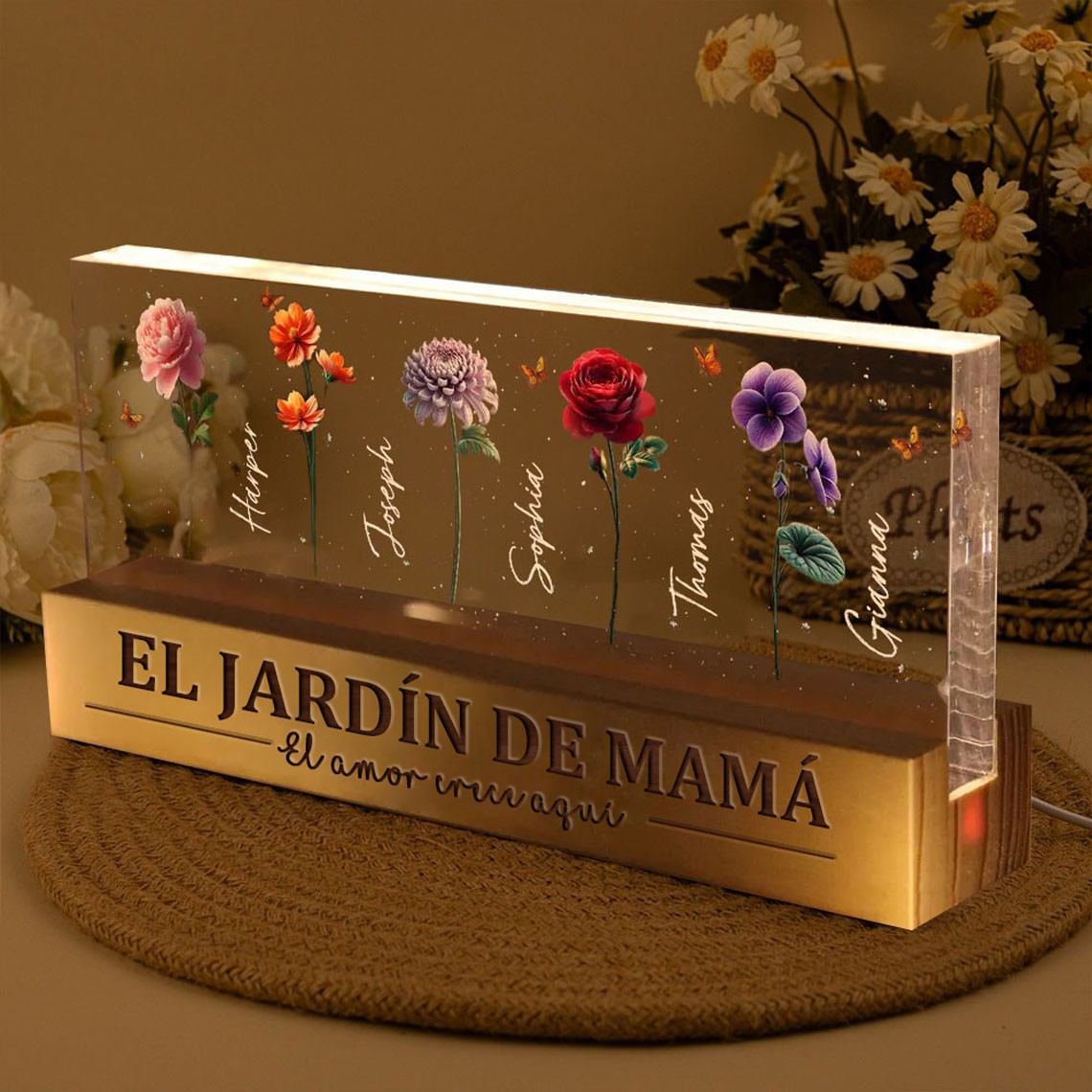 Luz de noche de madera con diseño de flores de nacimiento "El amor crece aquí" personalizada para mamá, regalo único para mamá, abuela y el Día de la Madre.